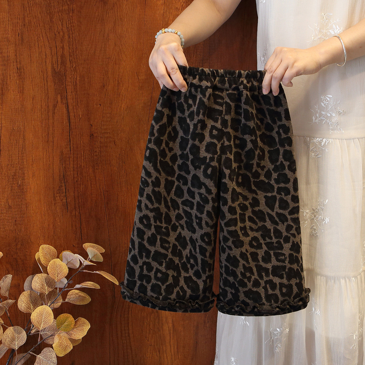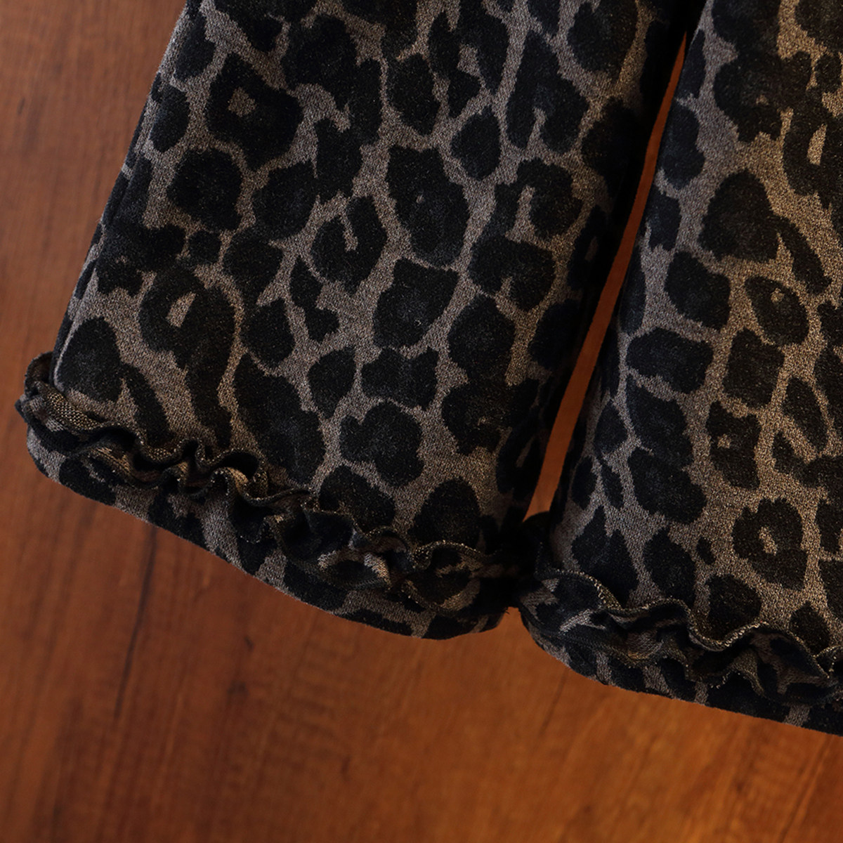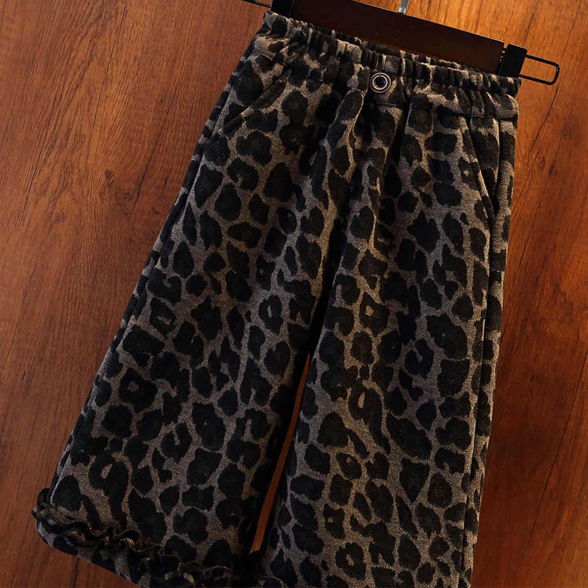 儿童时髦豹纹直筒裤 女宝宝加绒裤 女童一体绒保暖长裤 新款 子秋冬季