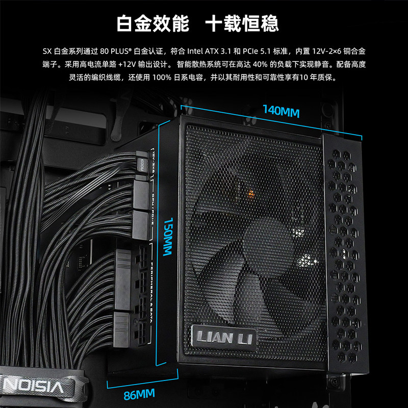联力SXP白金全模组电源850 1200W日系电容10年换新主机电源 1000