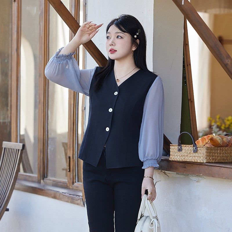 学院风polo领假两件针织毛衣女2025秋冬新款 内搭上衣 英伦大码