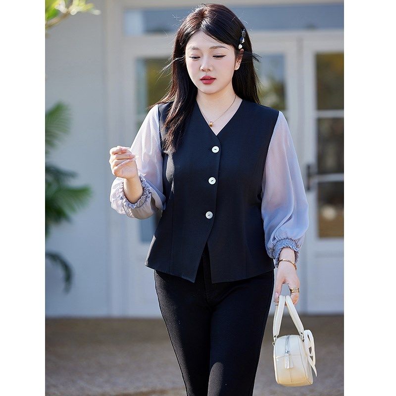 大码 胖妹妹秋冬 半高领毛衣女胖mm网纱拼接上衣内搭洋气针织打底衫