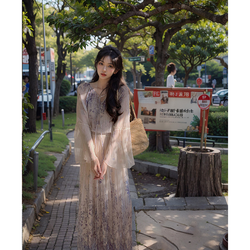 年春季 长裙雅法式 连衣裙感碎花风显名媛优瘦2025气质长袖 新款