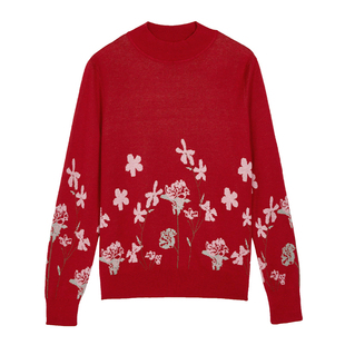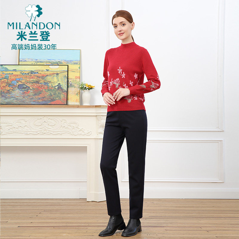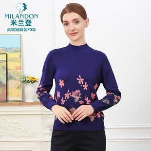 女长袖 印花半高领针织衫 保暖厚 2025年秋冬新款 米兰登中老年妈妈装
