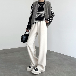 直筒裤 混纺羊毛阔腿裤 高个子加长糯米毛呢加绒窄版 2025新款 女冬季