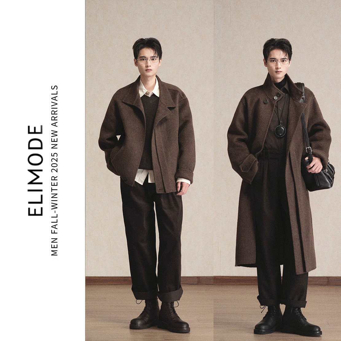 领双排扣呢子风衣外套加厚ins潮流 过膝西装 冬季 毛呢大衣男中长款