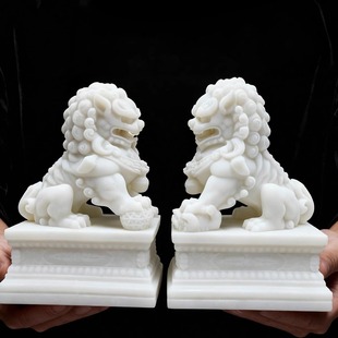小石狮子镇宅一对石雕汉白玉入户看门招财摆件守坟墓前精雕石狮子