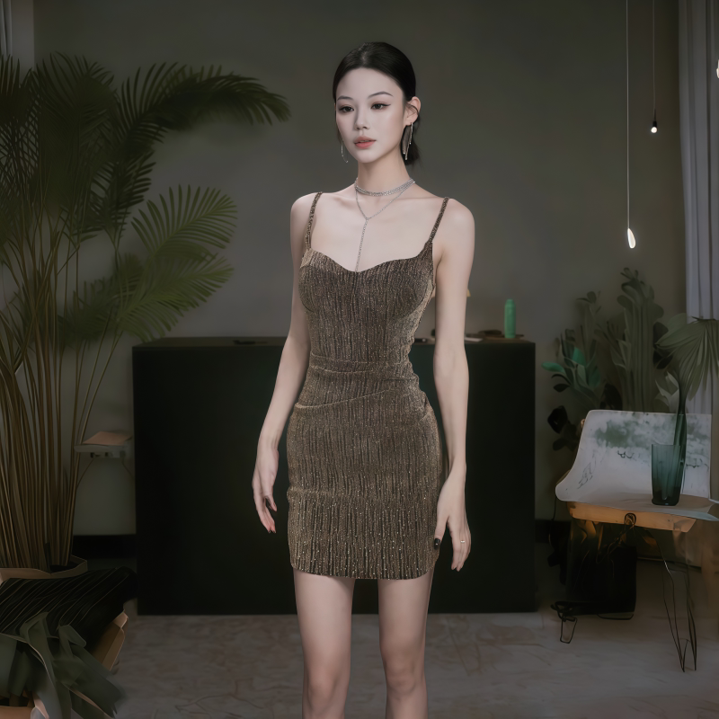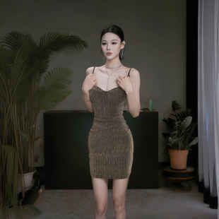 显身材包臀礼服短裙 气质修身 instahot 性感闪闪吊带连衣裙女秋季