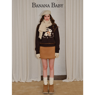 绵羊毛 减龄提花毛衫 BANANA 新款 女蝴蝶结系带 BABY2025年冬季