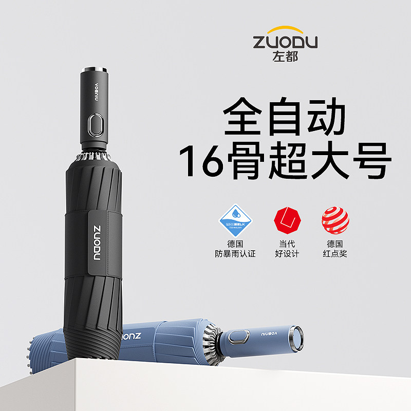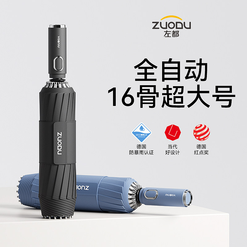 左都全自动雨伞16骨超强抗风加大号加厚加固大暴雨专用男士 折叠伞