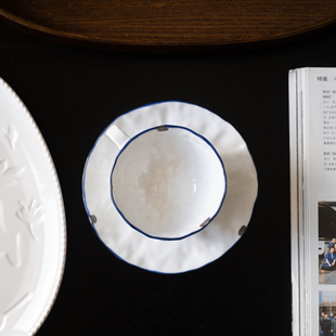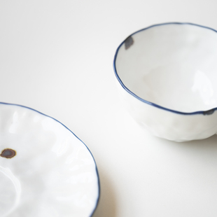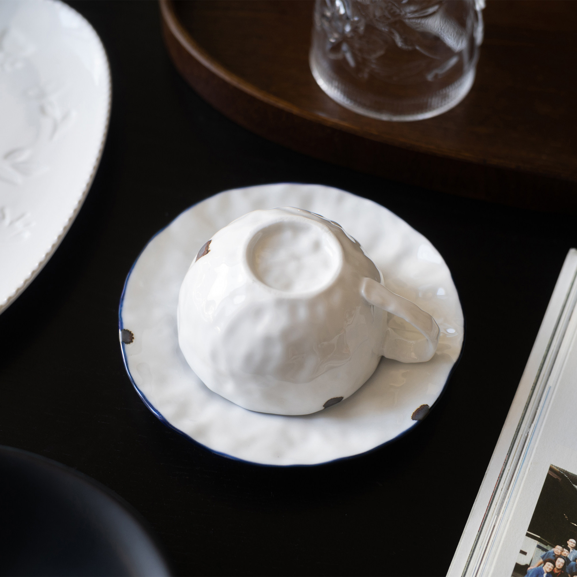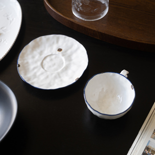 做旧蓝边水杯 半村 经典 手捏感咖啡杯 陶瓷拿铁咖啡杯碟 手工复古