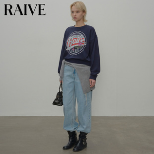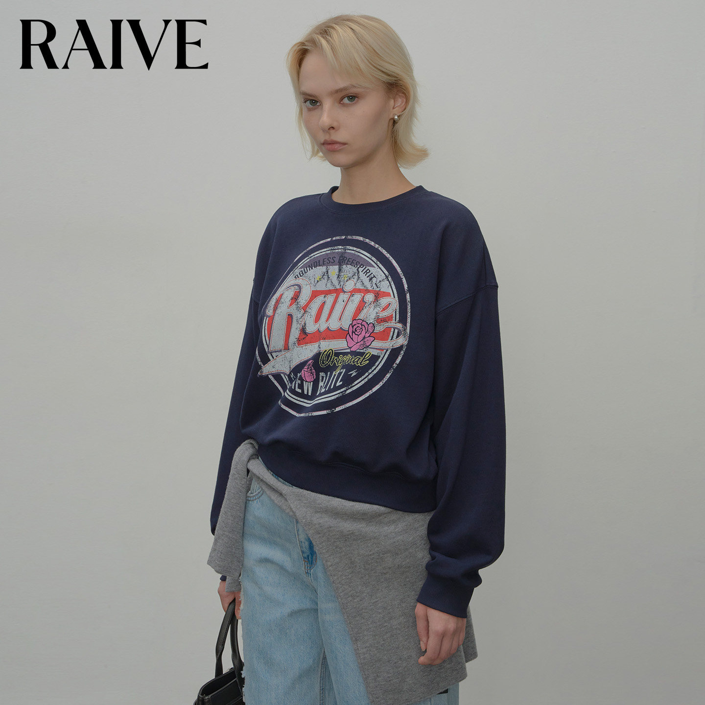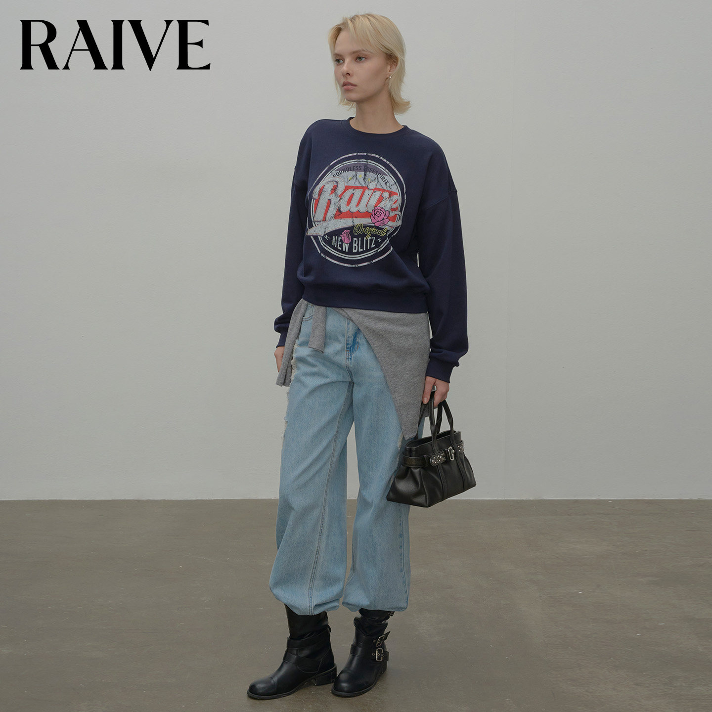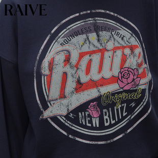 圆领上衣 BOHO玫瑰卫衣女宽松logo做旧效果印花短款 RAIVE冬季 新款