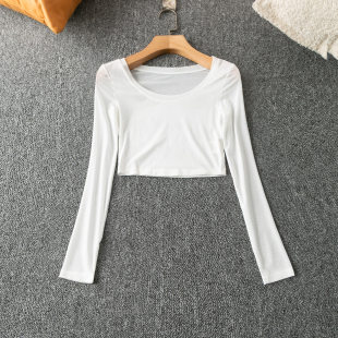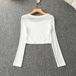 休闲 简约时尚 短款 圆领长袖 006 春秋外贸韩版 套头网纱蕾丝衫 新款