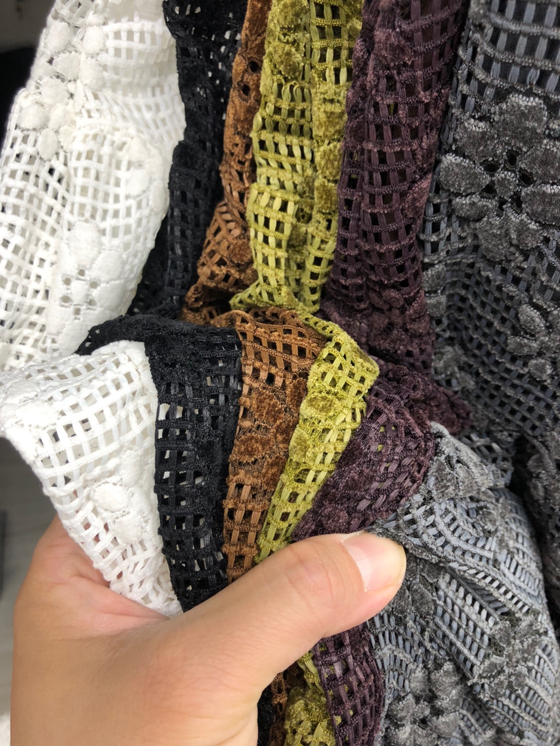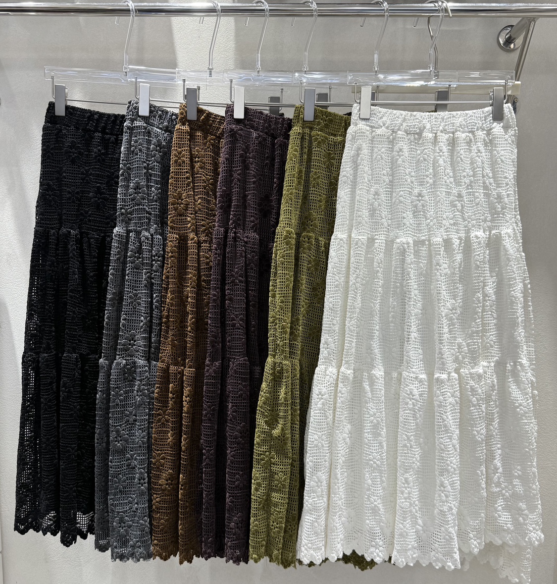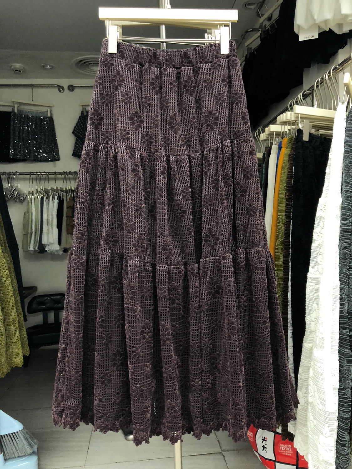 秋冬法式 高腰重工大裙摆a字裙 甜美立体钩花网格蕾丝半身裙中长款