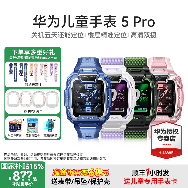 2025新品 华为儿童手表5pro智能学生电话手表双摄离线楼层定位游泳防水带微信官方旗舰店正品 政府补贴15%