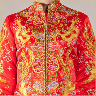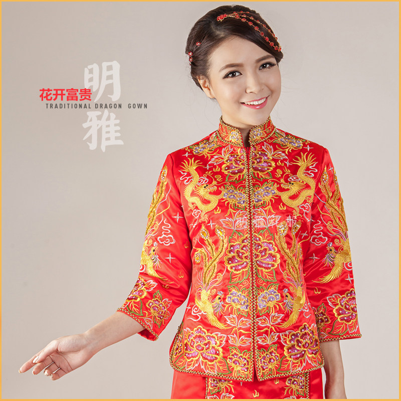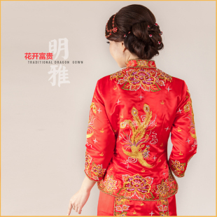 花开富贵机绣金银线褂龙凤裙褂结婚中式 礼服新娘旗袍敬酒服可定做