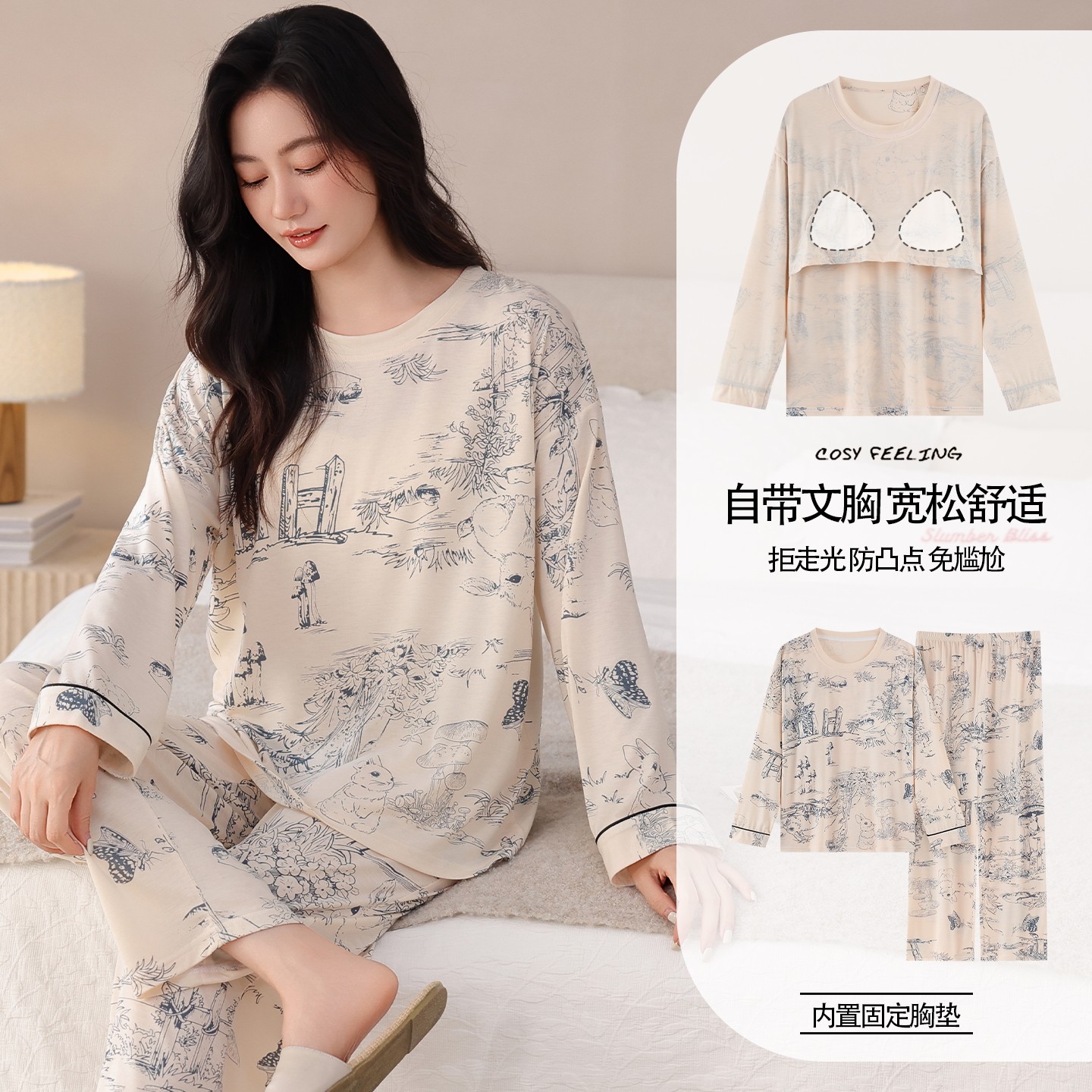 睡衣女款 高级感套装 春秋季 家居服秋冬薄款 纯棉长袖 浪莎2025年新款