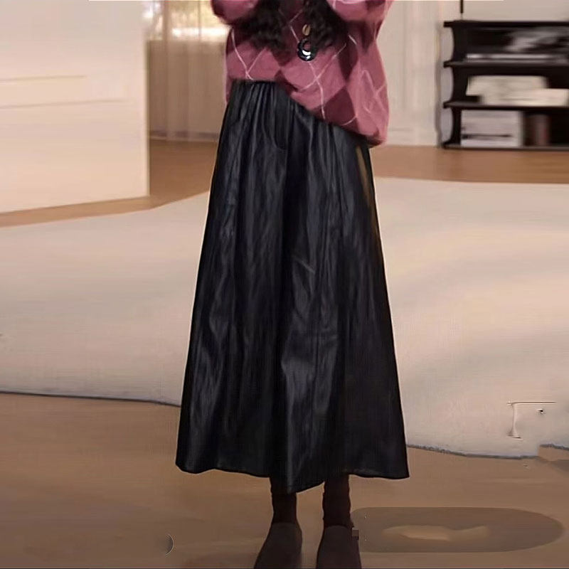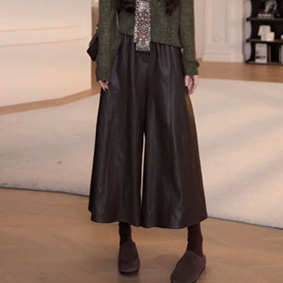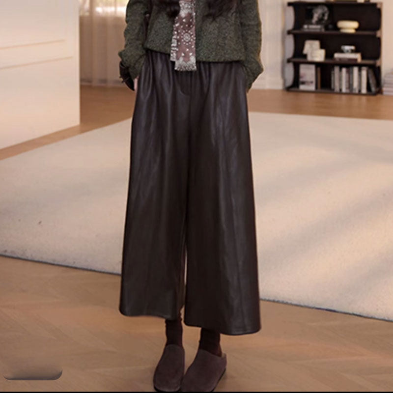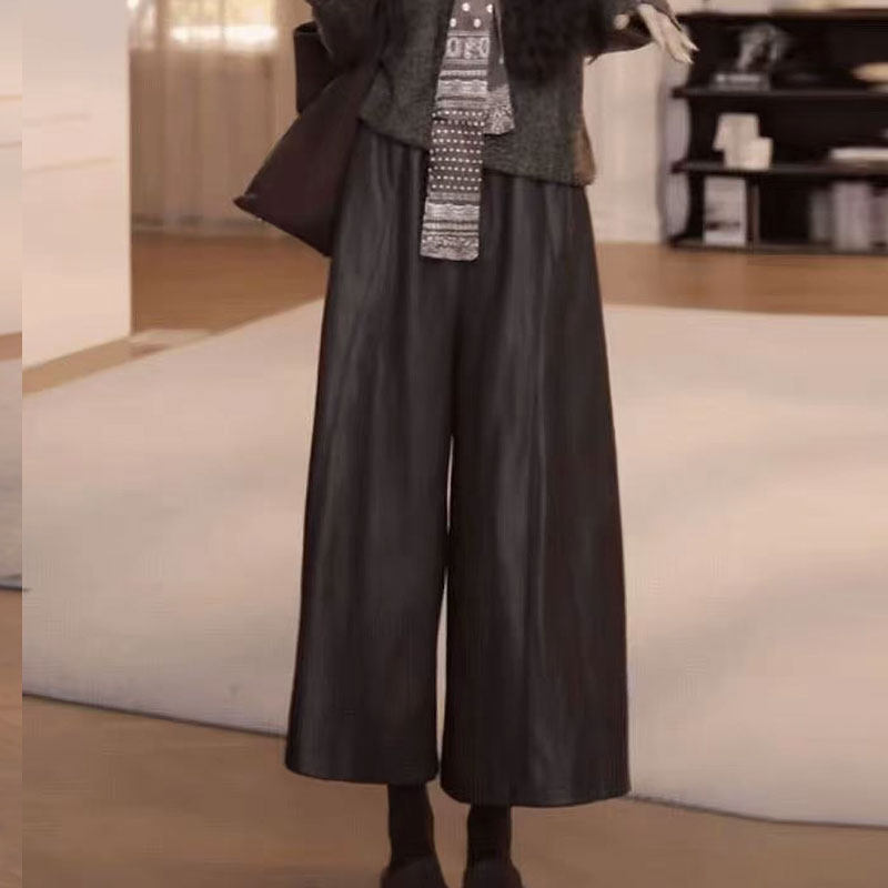 高腰显瘦PU皮裤 时尚 女宽松百搭休闲阔腿裤 大码 欧货新款 九分裤 韩版