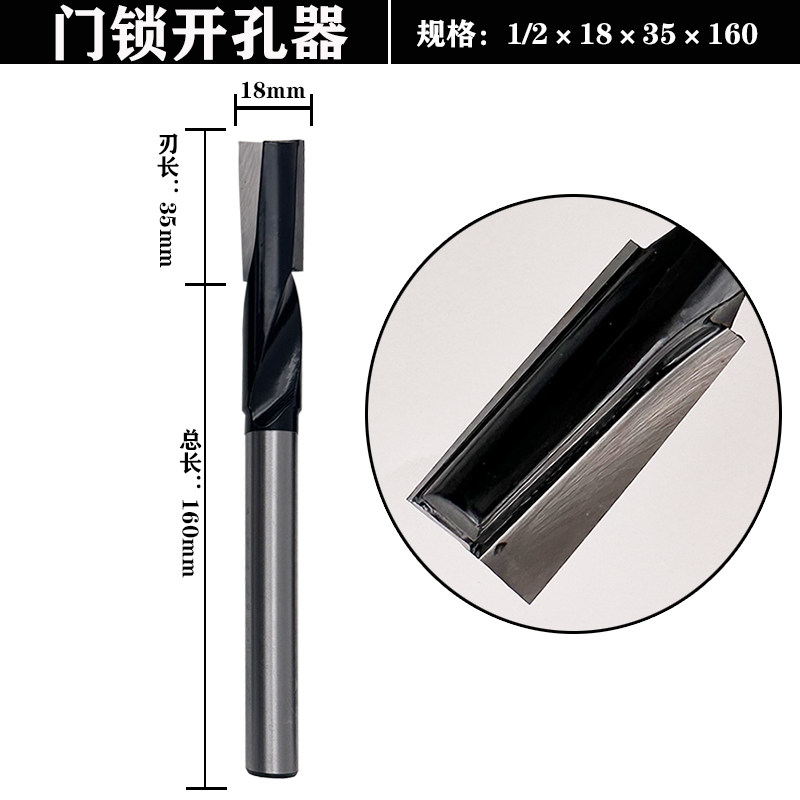 木工门锁加长铣刀直铣刀门板锁孔合金刀头电木铣刀开槽螺旋刀锁眼