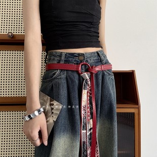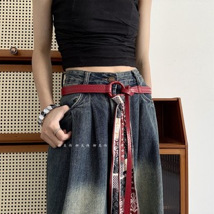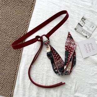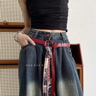 饰 装 柳吴伟高级感配饰红色丝巾腰带配裙子收腰打结皮带女款 牛仔裤
