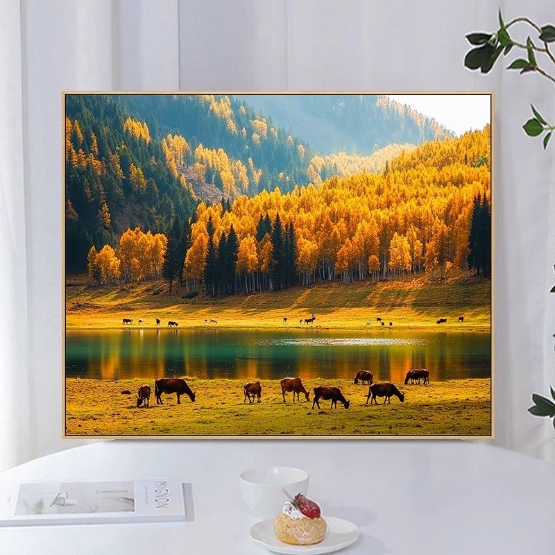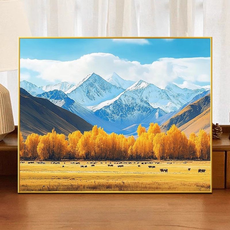 饰画仿油画风景唯美治愈雪山草原卧室客厅挂画 装 秋天 阿勒泰横版