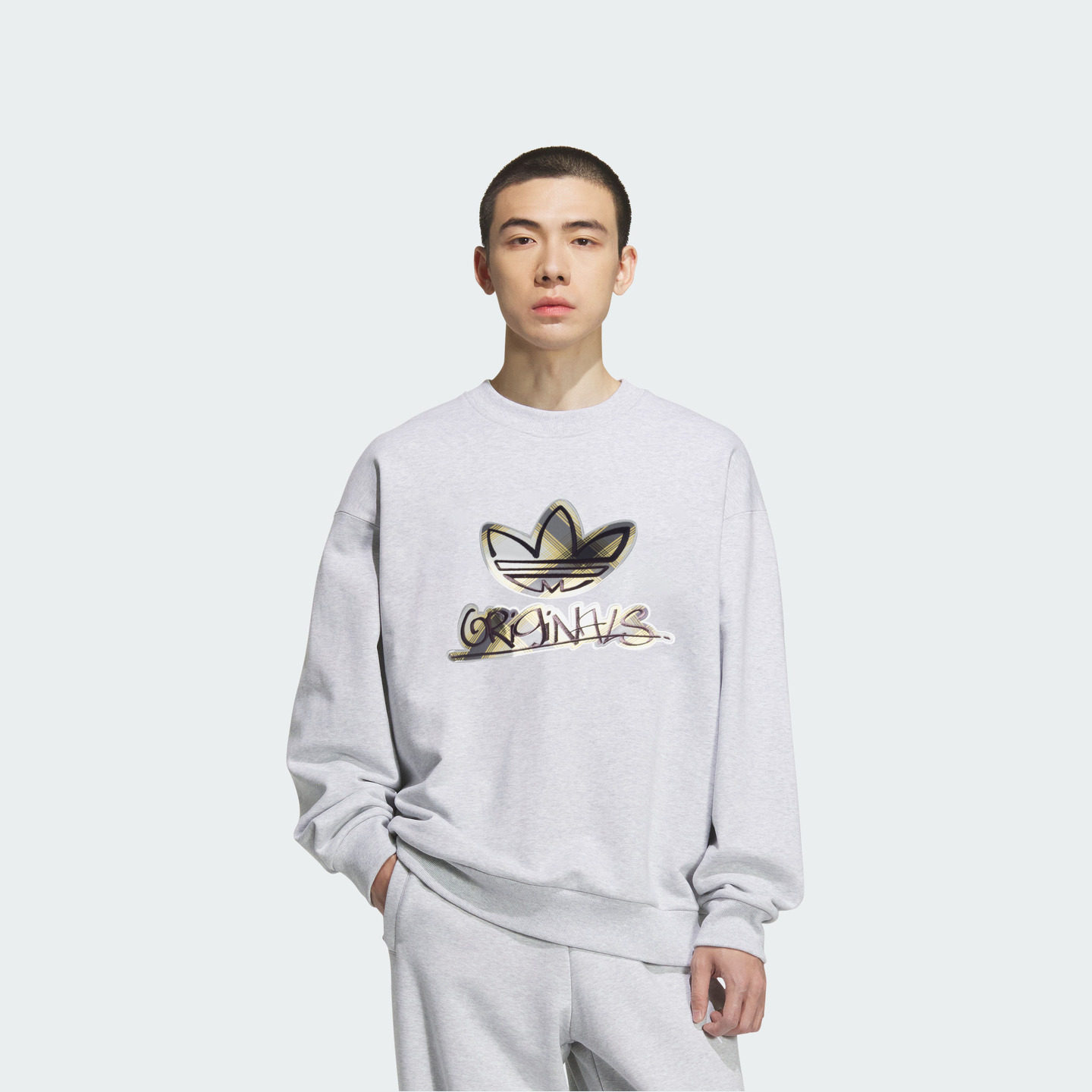 毛圈布宽松舒适格纹印花百搭运动套头卫衣男adidas阿迪达斯三叶草