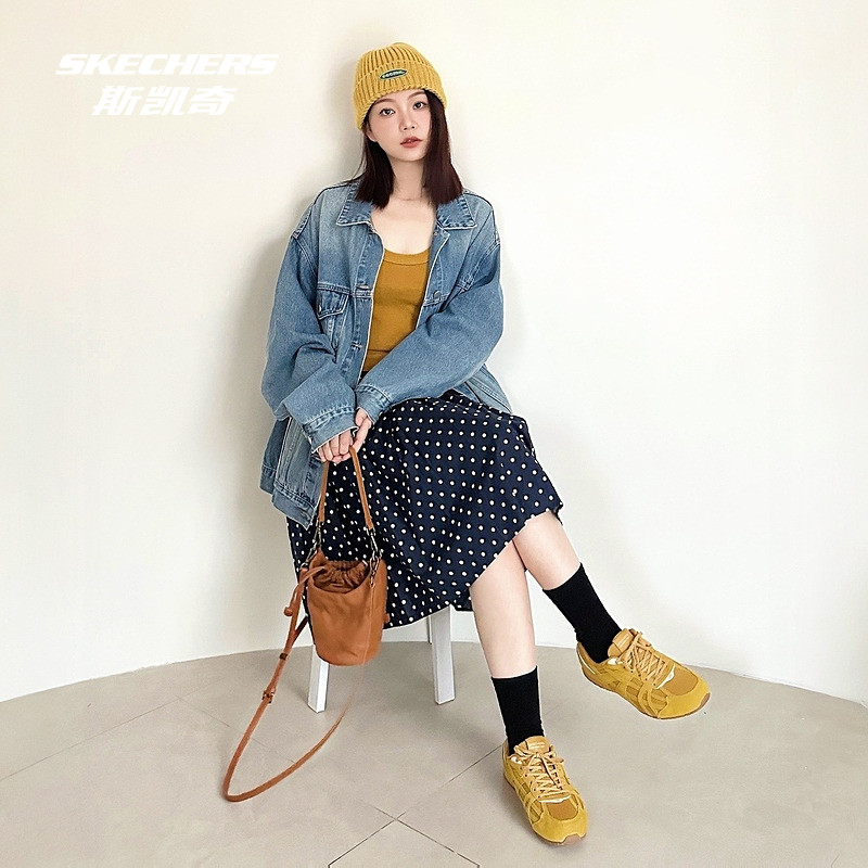 女休闲运动T头复古薄底鞋 26新品 斯凯奇闪穿德训板鞋 孙乐言同款