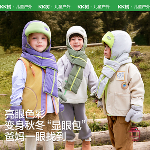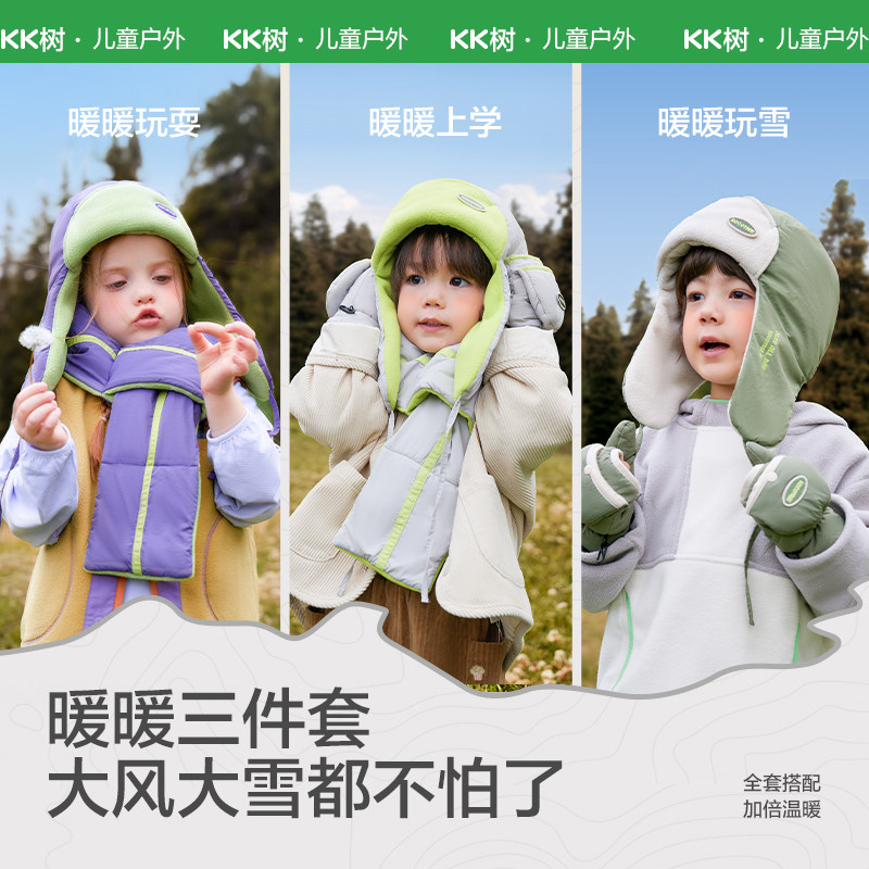 KK树儿童帽子秋冬季 男童女孩防风保暖护耳雷锋帽宝宝围巾手套户外