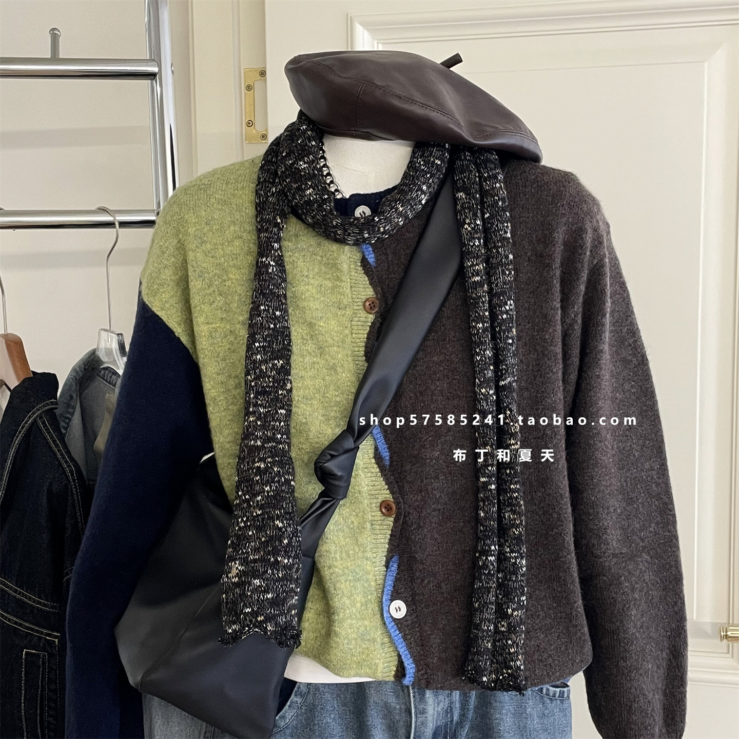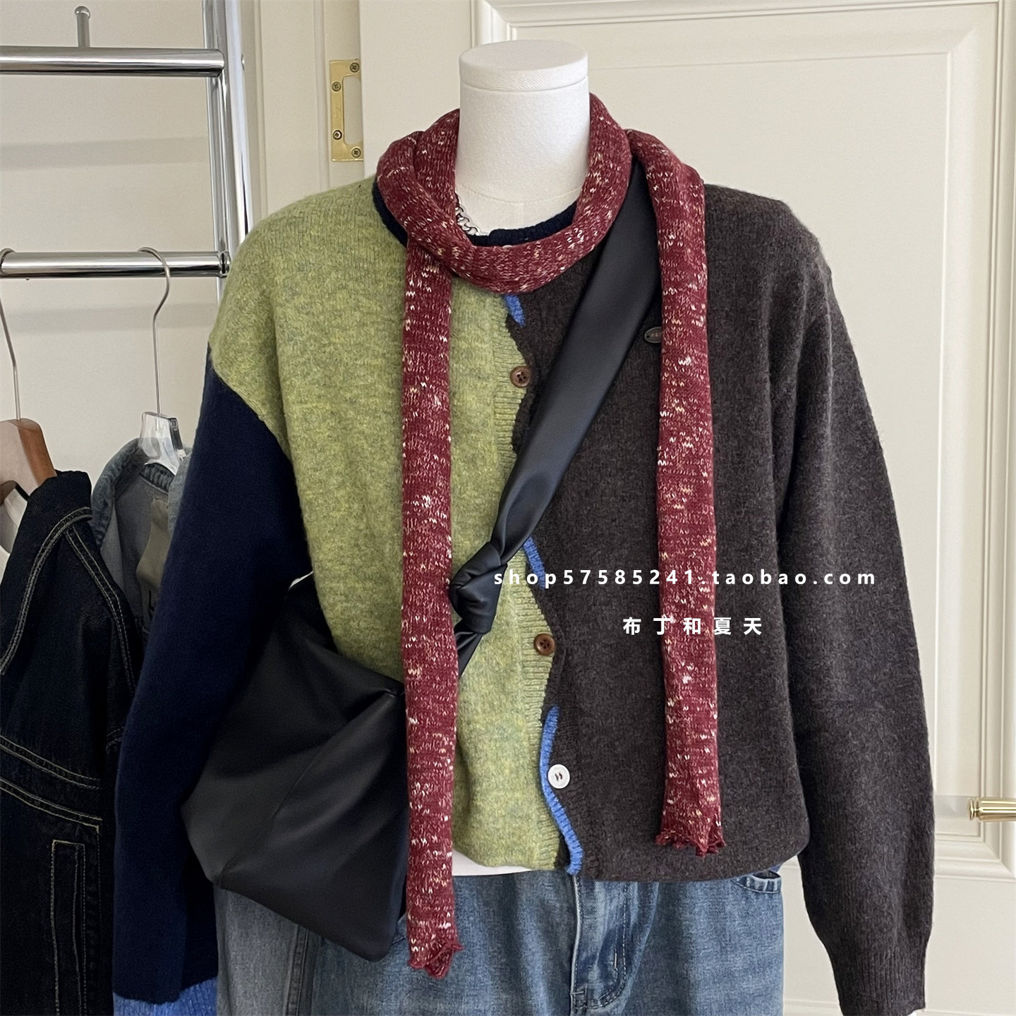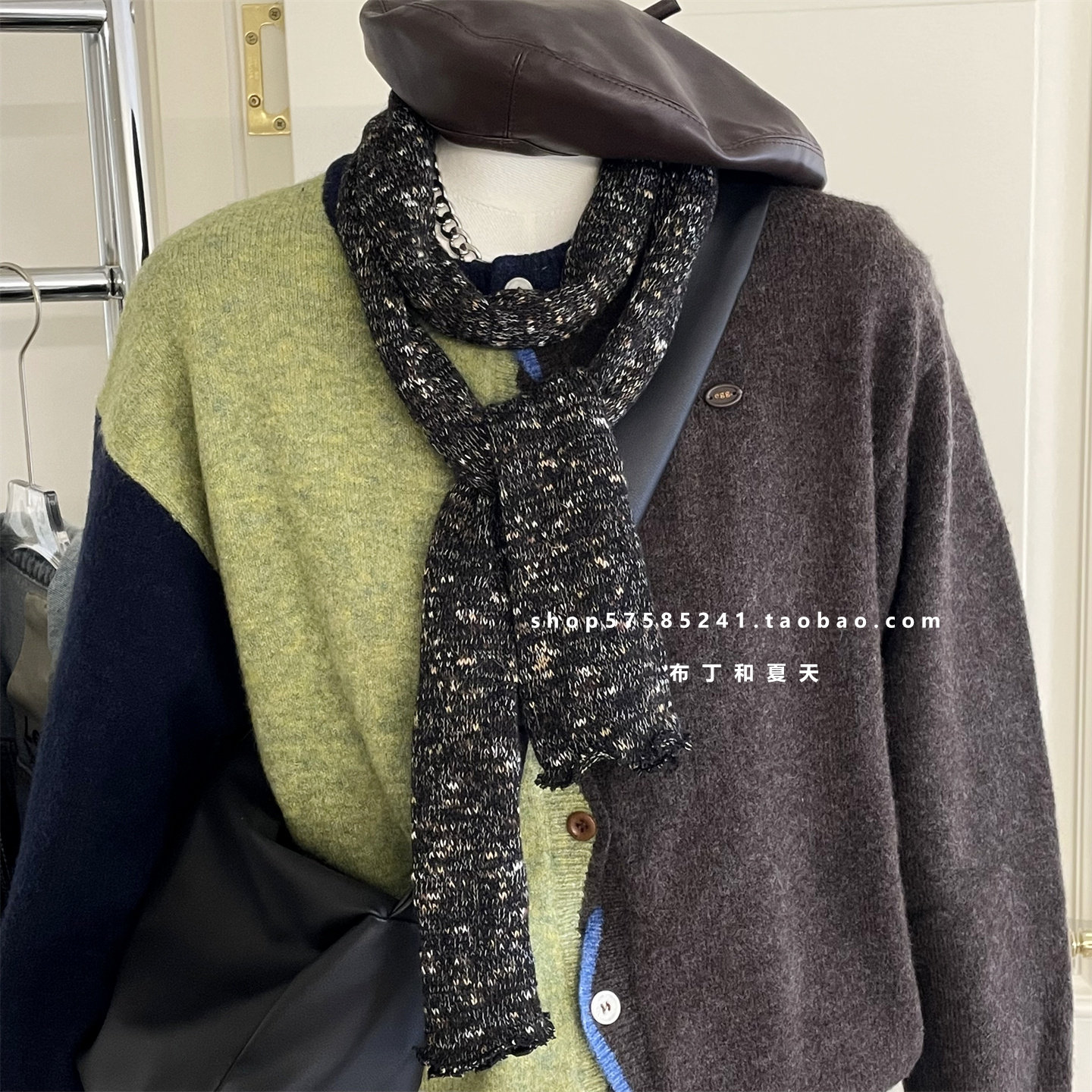 早秋古着彩纱细长条腊肠小围巾复古时髦辣妹穿搭颈饰围脖凹造型女