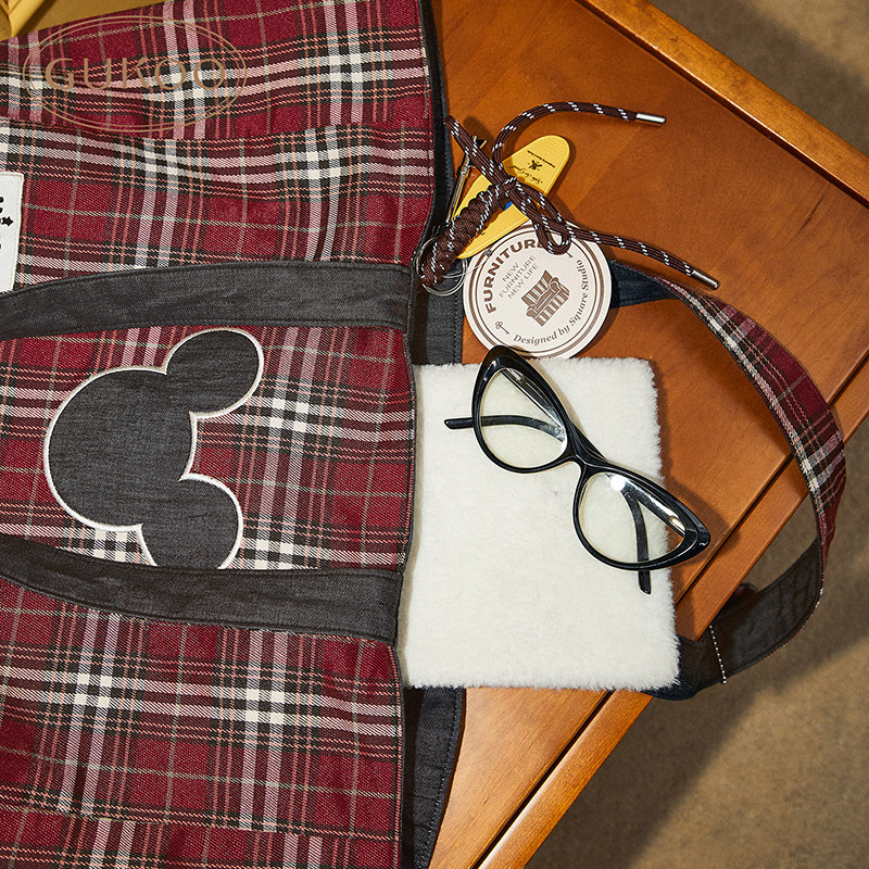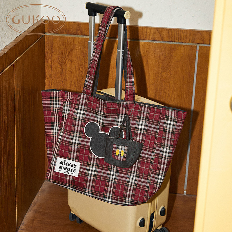 Gukoo 果壳双面手提包迪士尼联名格纹米奇帆布包女士托特包单肩包
