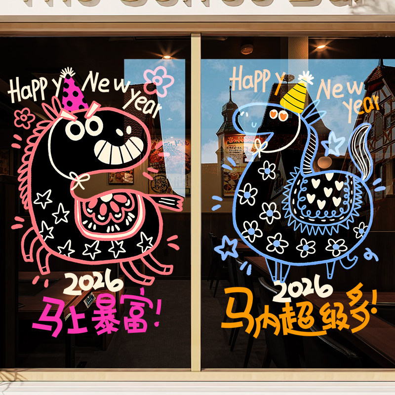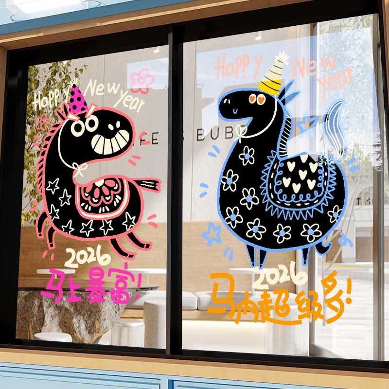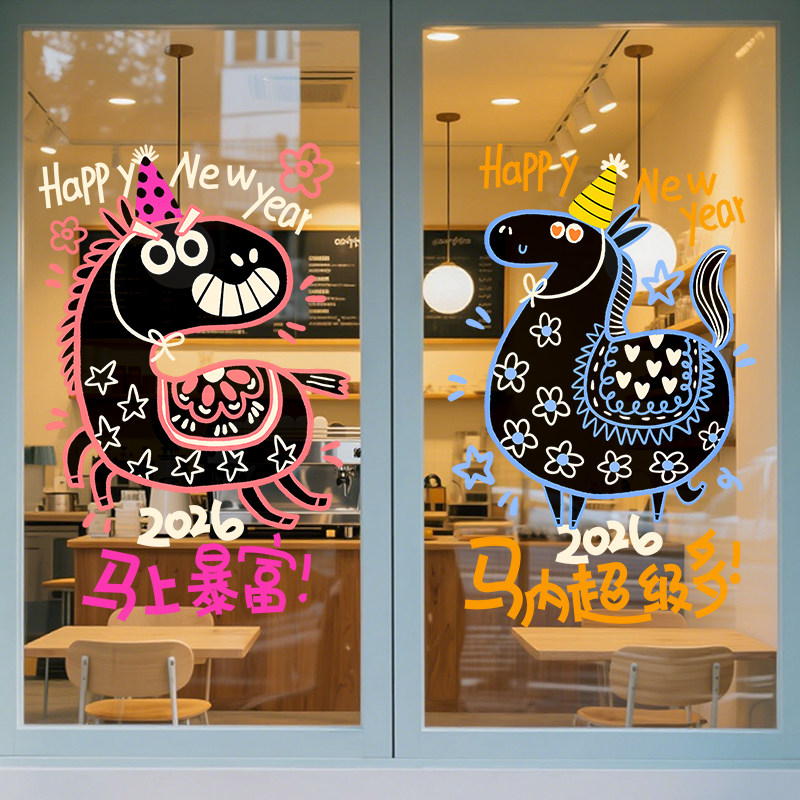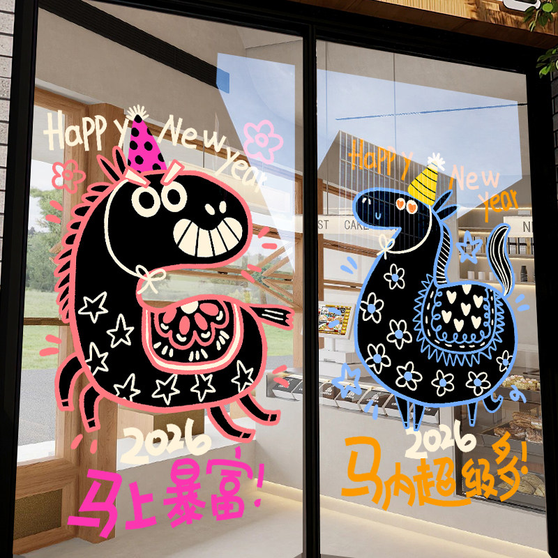 扮马年春节静电窗花公司节日氛围 旦过年玻璃装 新年装 饰贴纸2026元