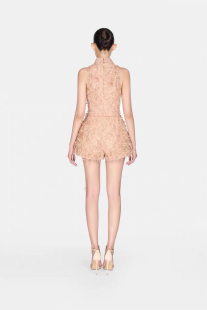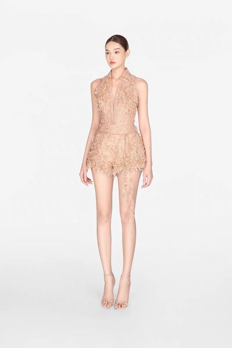 连体裤 越南小众设计师法式 气质重工烧花镂空立体花朵收腰显瘦无袖