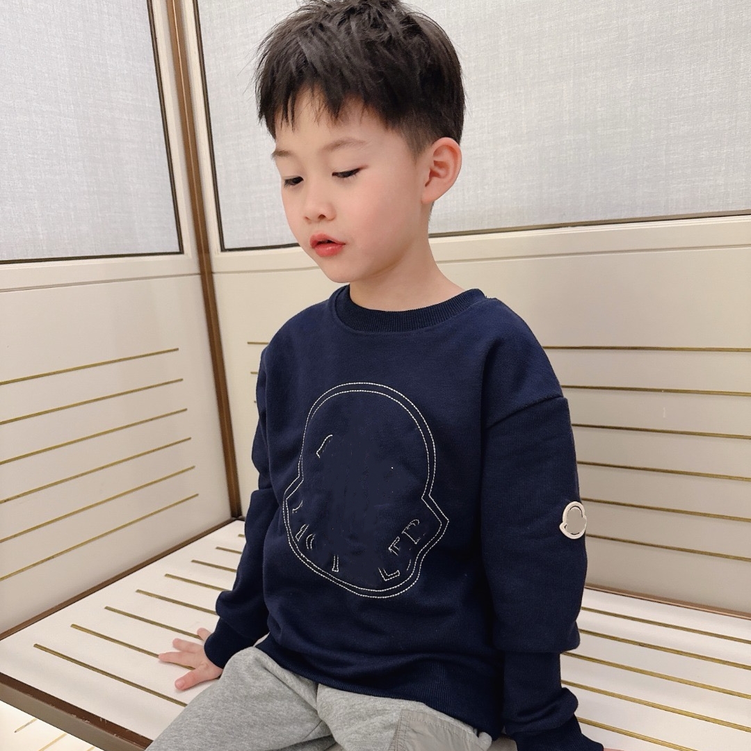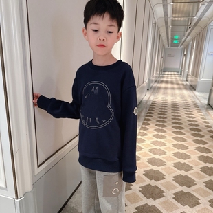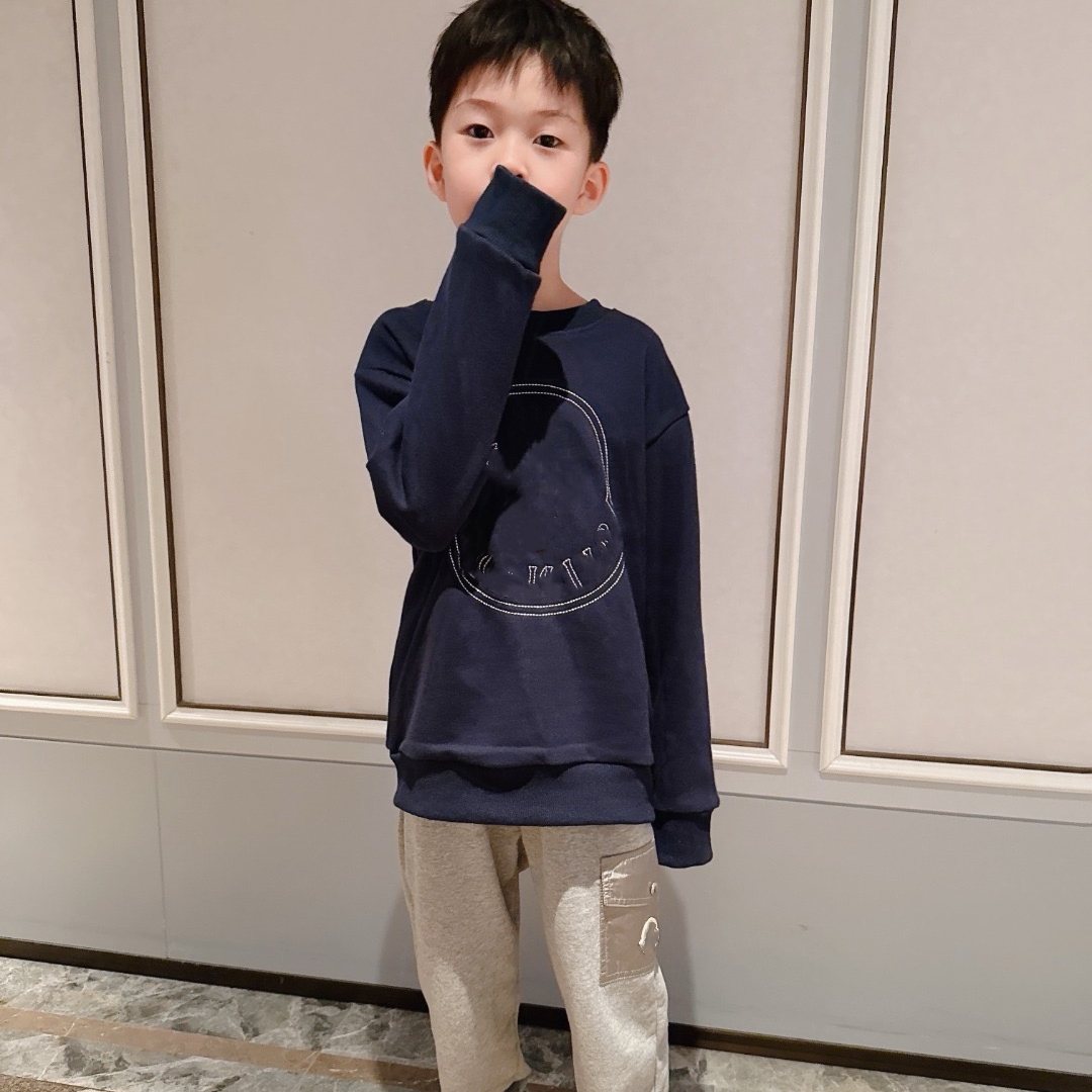 简约休闲风藏青色线条绣字母卫衣童装 小中大童百搭磨毛耐穿上衣