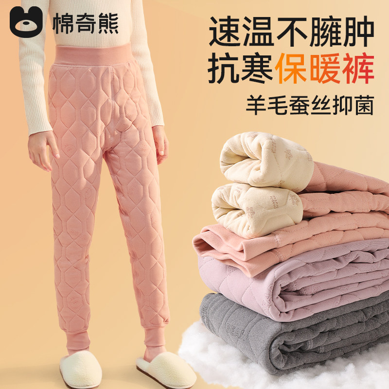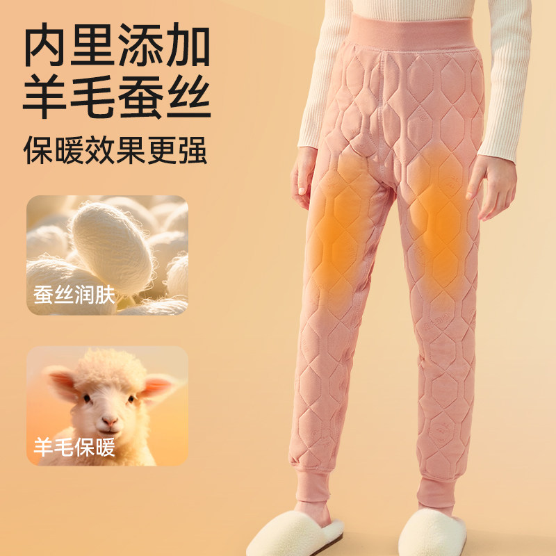 2025秋冬女童加绒加厚羊毛棉裤 儿童校服神器保暖裤 羊毛蚕丝