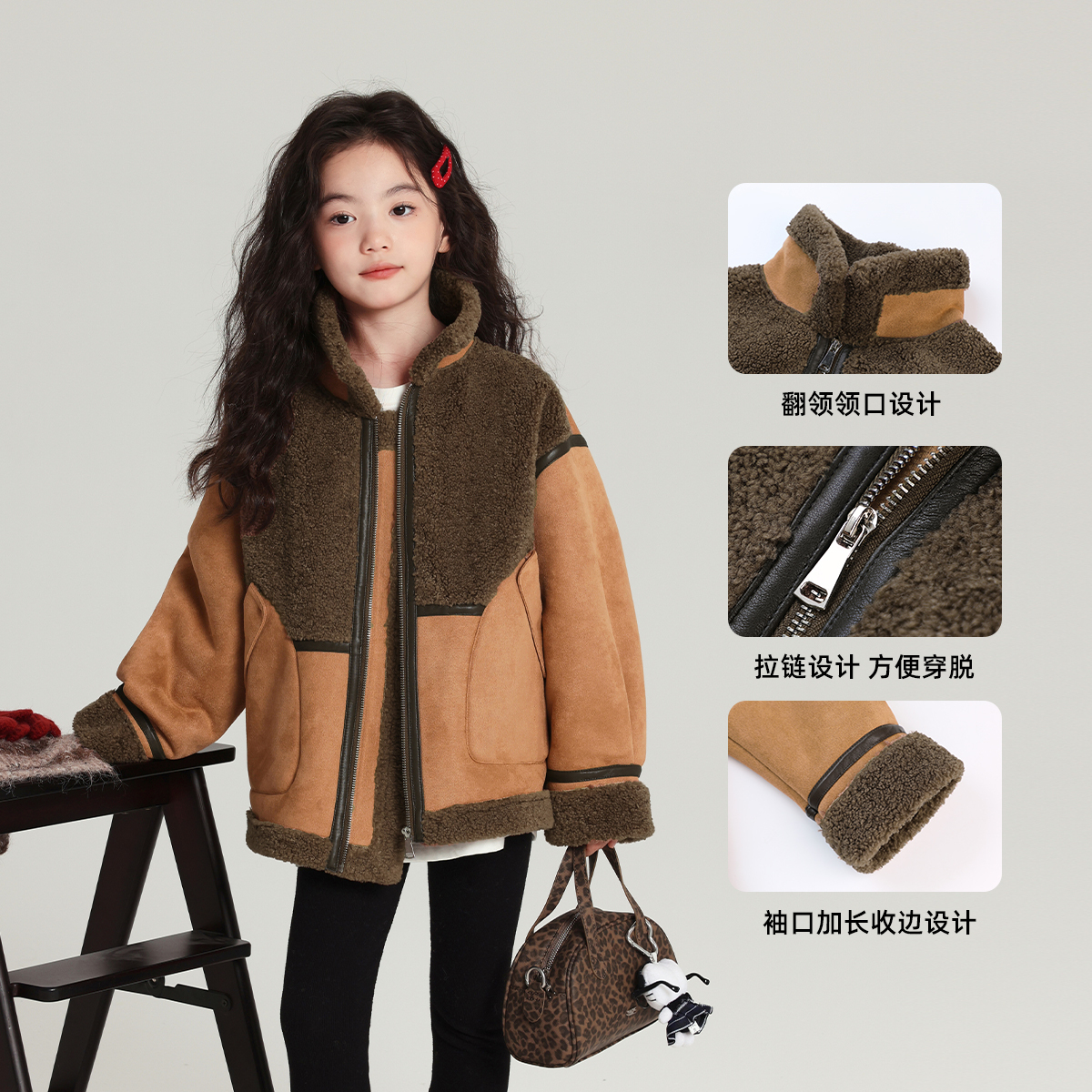 外套普通款 男士 秋冬羊剪绒立领夹克颗粒绒卫衣皮毛一体羊羔绒男装