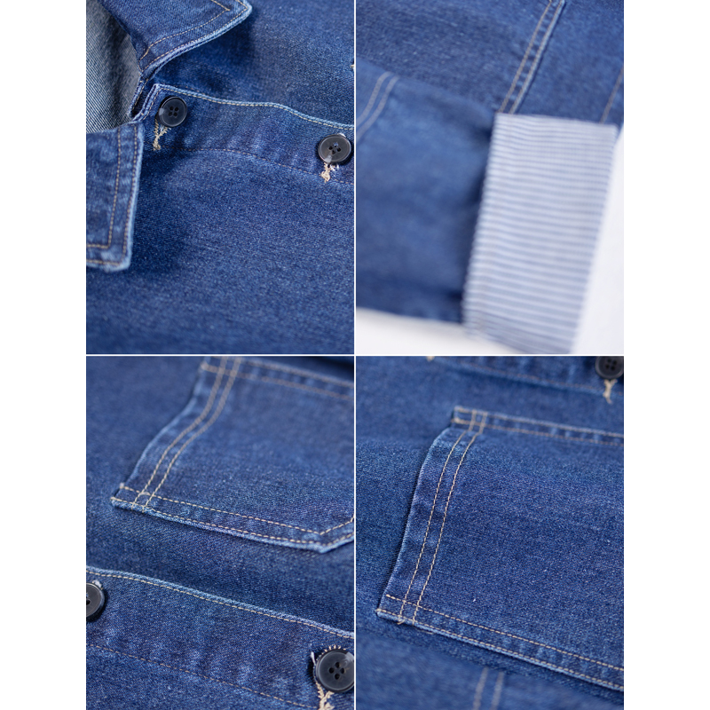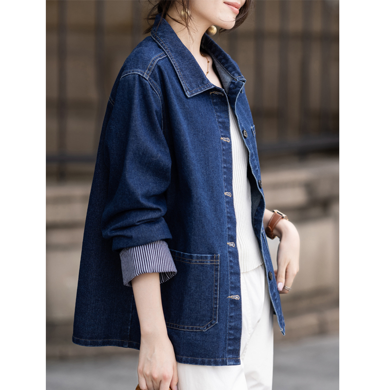 口牛仔外套秋冬新款 条纹拼接袖 复古时髦洋气上衣 女装 九月陌墨大码