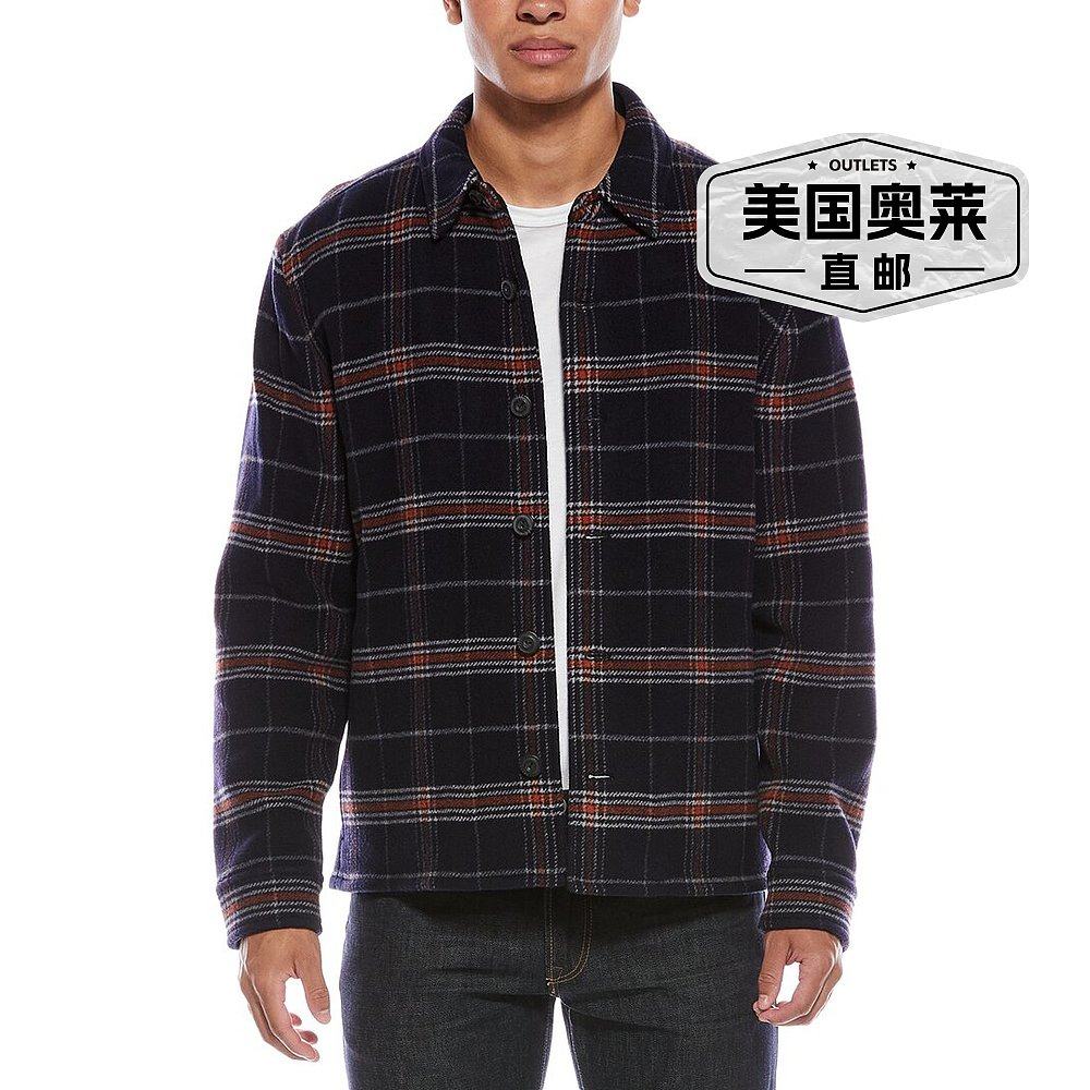 美国奥莱直发男装 自营 蓝色 夹克 Vince格子羊毛混纺衬衫