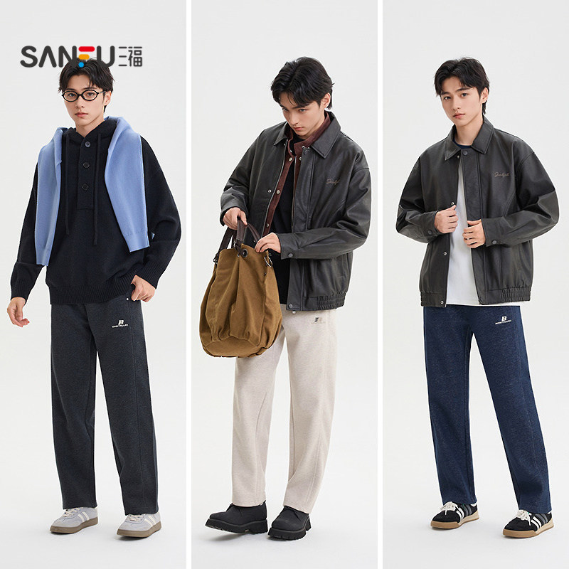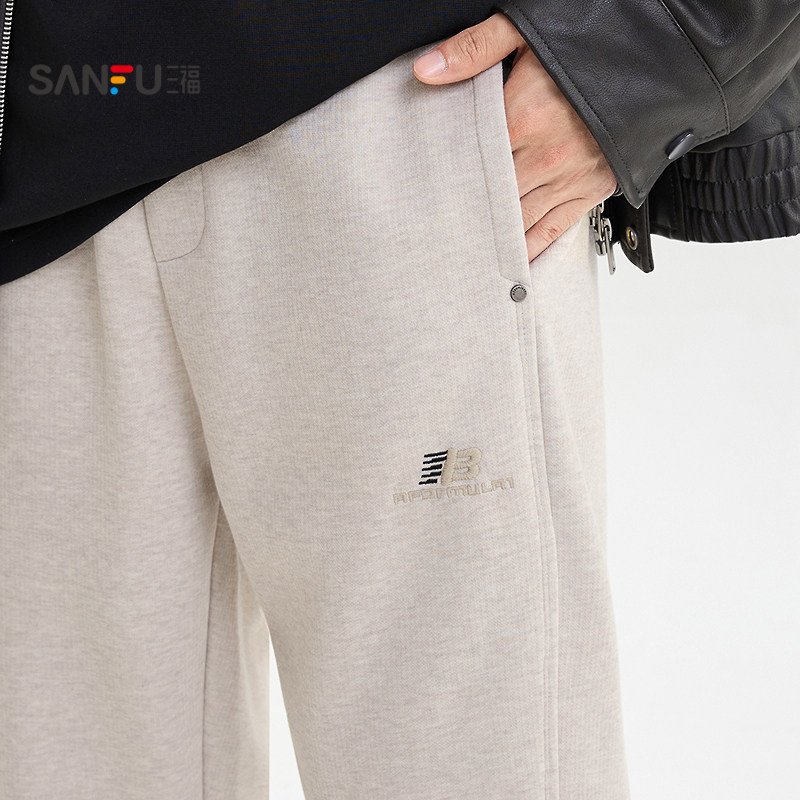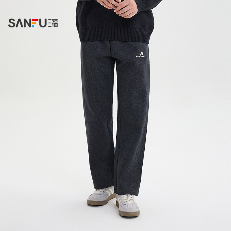 宽松直筒裤 三福2025冬季 时尚 彩棉字母绣花休闲裤 子510019 男士