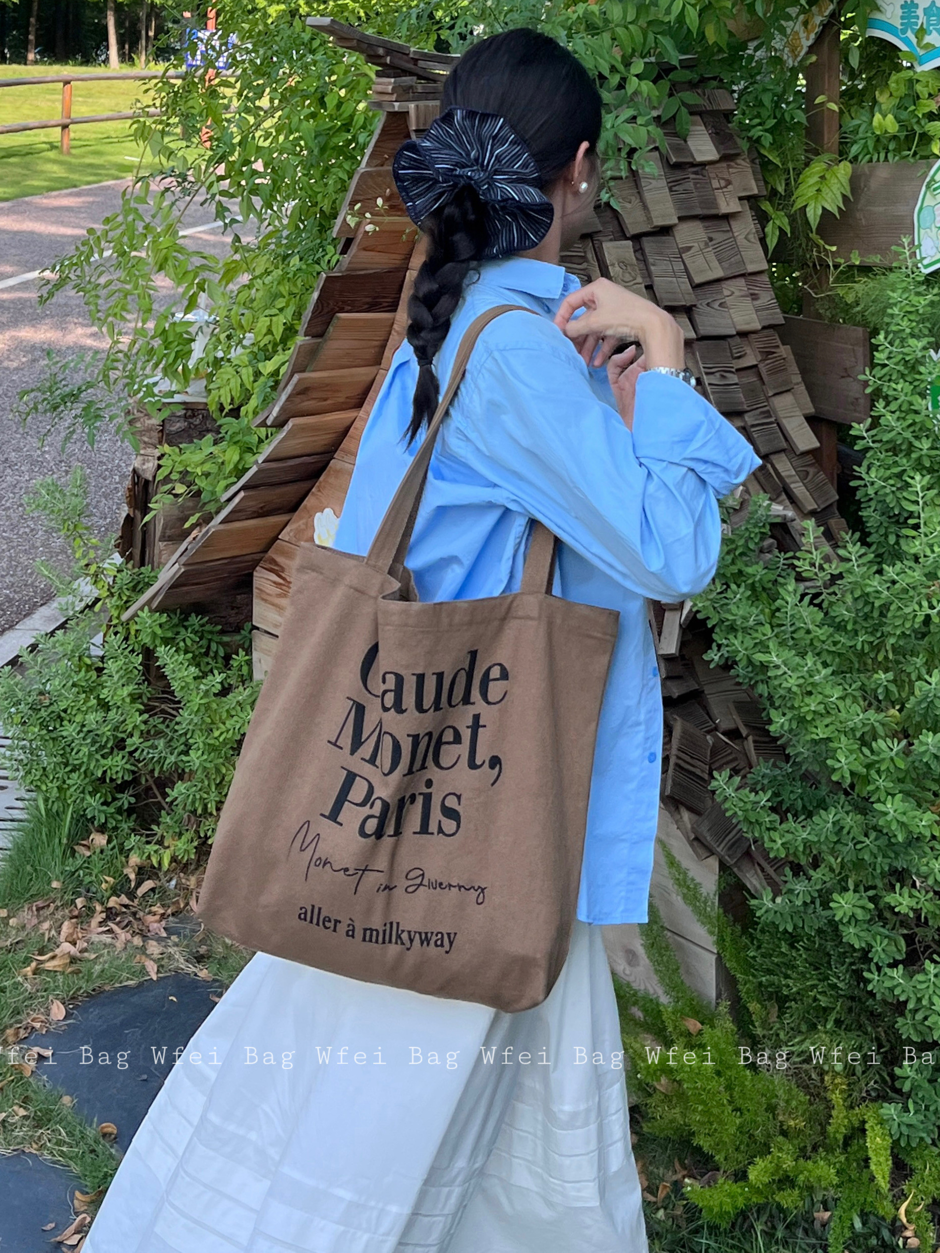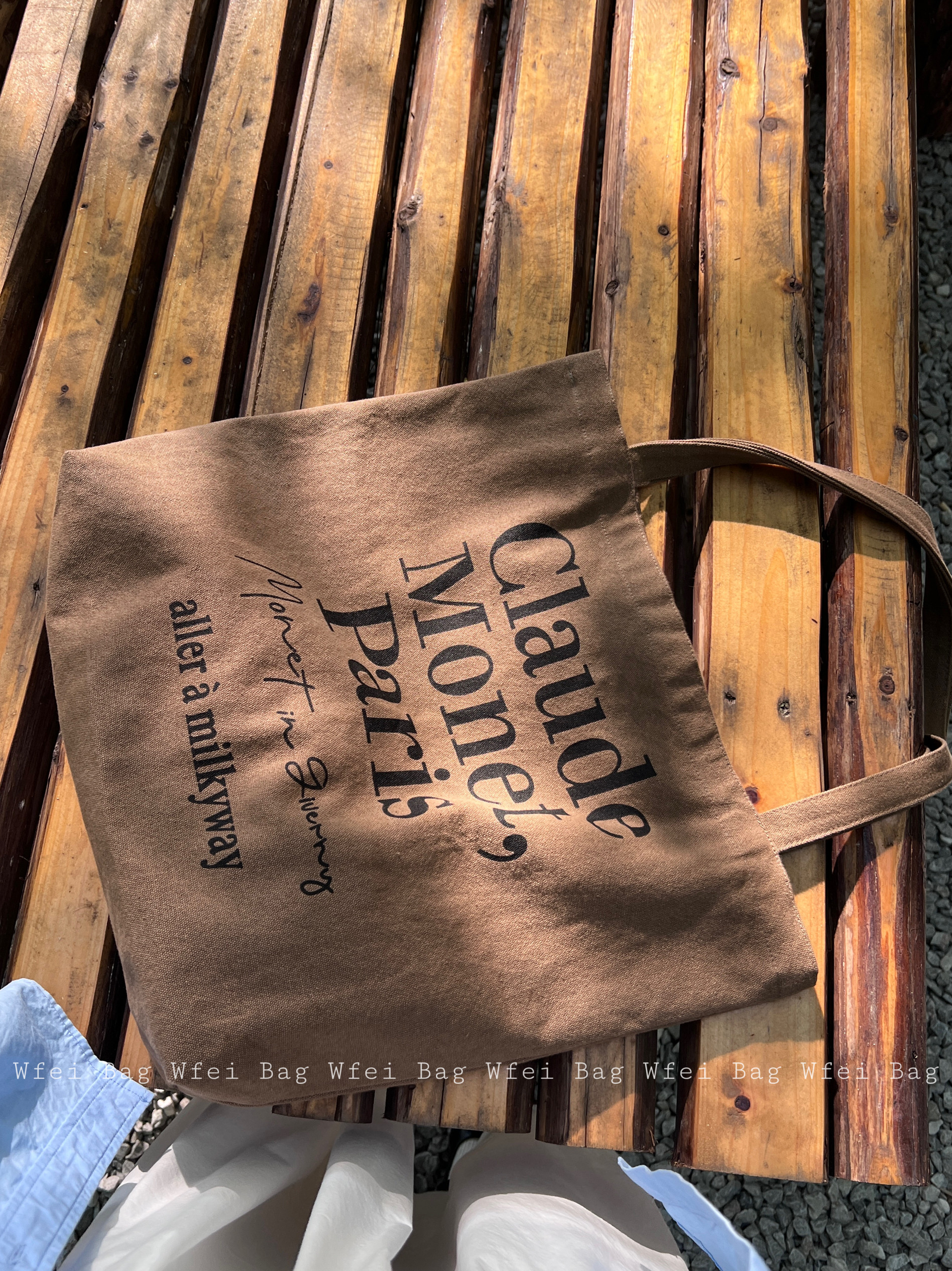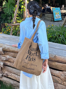 字母帆布包简约休闲百搭新款 法式 棕色单肩包 ins博主同款 Wfei韩版