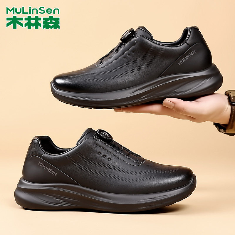 男款 上班商务结婚男鞋 2025新款 子男士 黑色软底运动鞋 回力休闲皮鞋