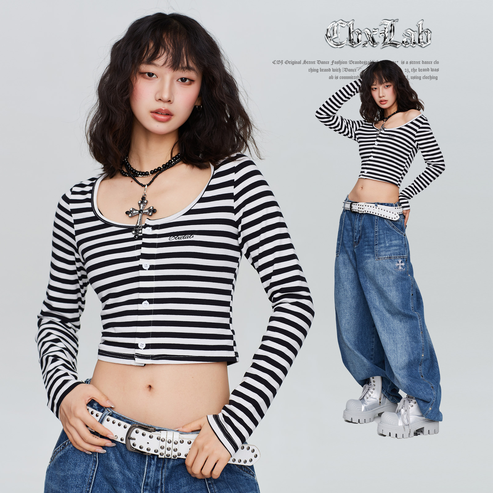 秋冬个性 CBXLAB街舞潮牌 开衫 摩登辣妹复古长袖 腰搭 心动专区
