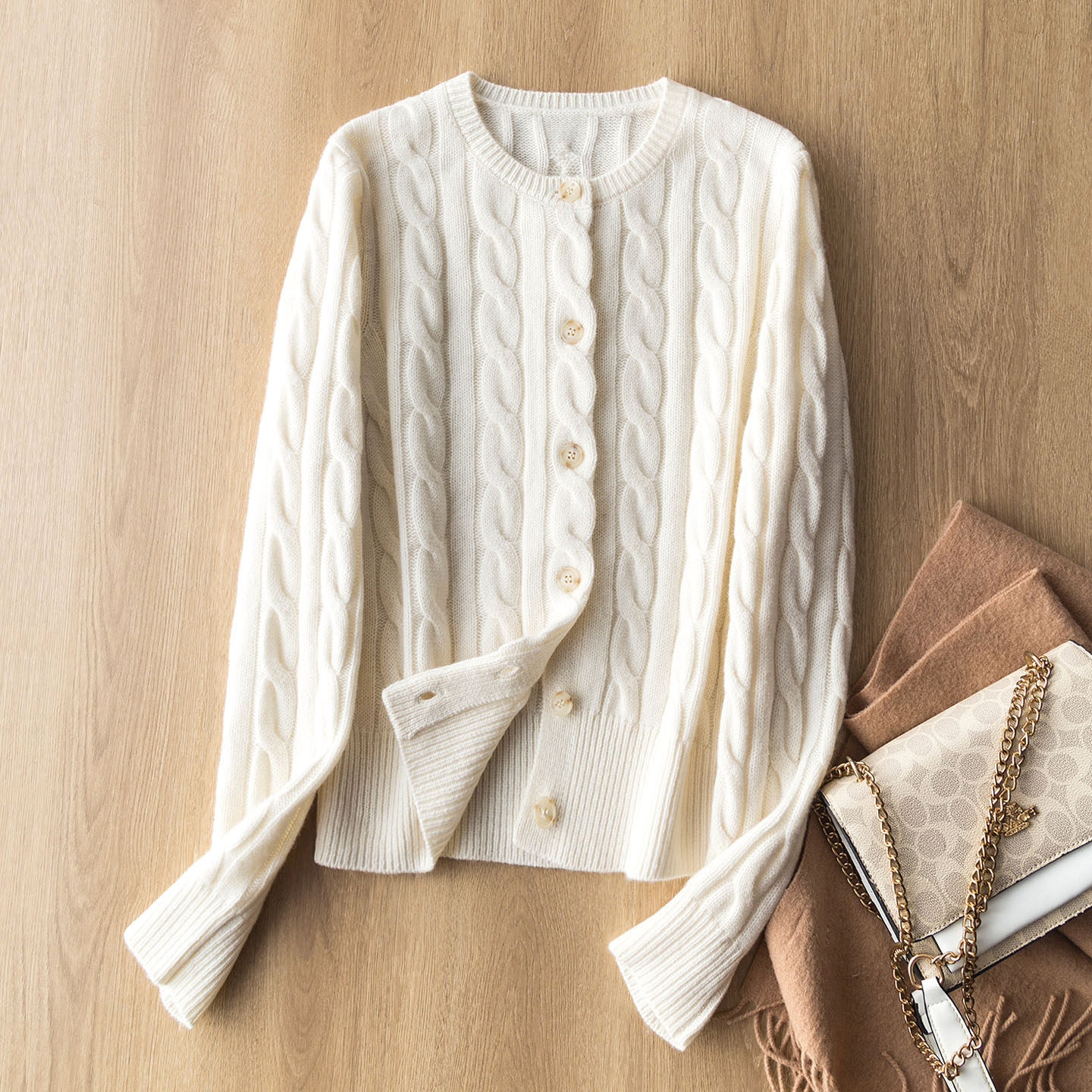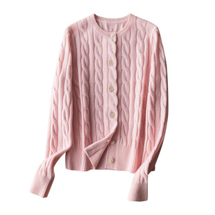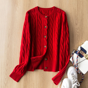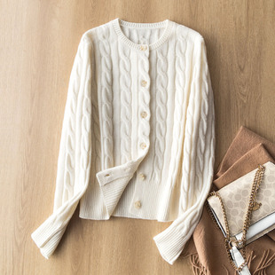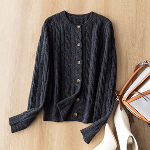 厚实复古绞花圆领针织开衫 澳洲100%绵羊毛 毛衣外套女 款 口碑经典