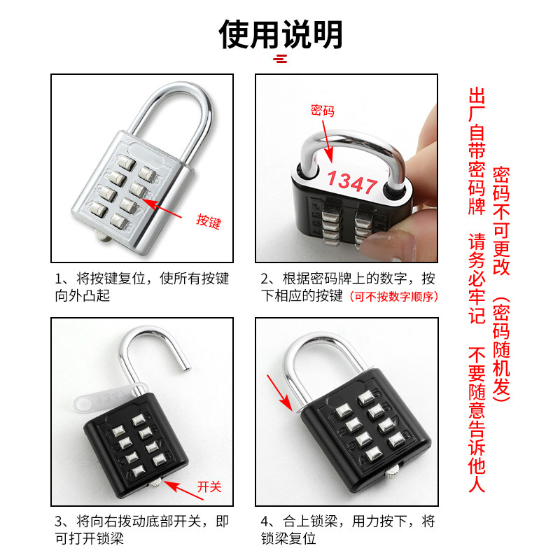 防水金属密码 锁迷你可爱防盗门锁通用型家用数字挂锁行李箱衣柜锁