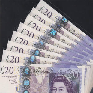 无47 外国钱币 英国20镑 欧洲纸币 全新UNC F序列 首发冠AA01
