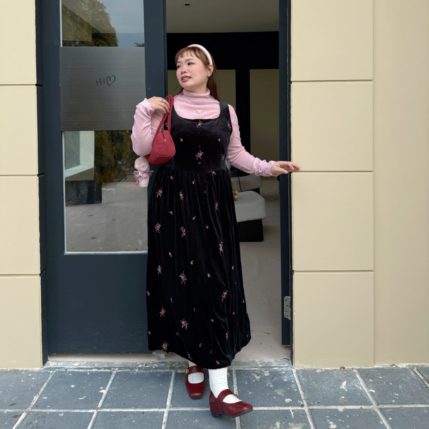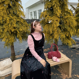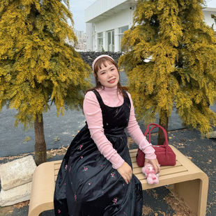 气质拼接显瘦新中式 胖妹妹时尚 Polo领加绒连衣裙两件套 秋冬季 大码