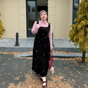安妮不火 收腰长裙 软糯垂感蕾丝拼接V领针织连衣裙女秋冬微胖大码