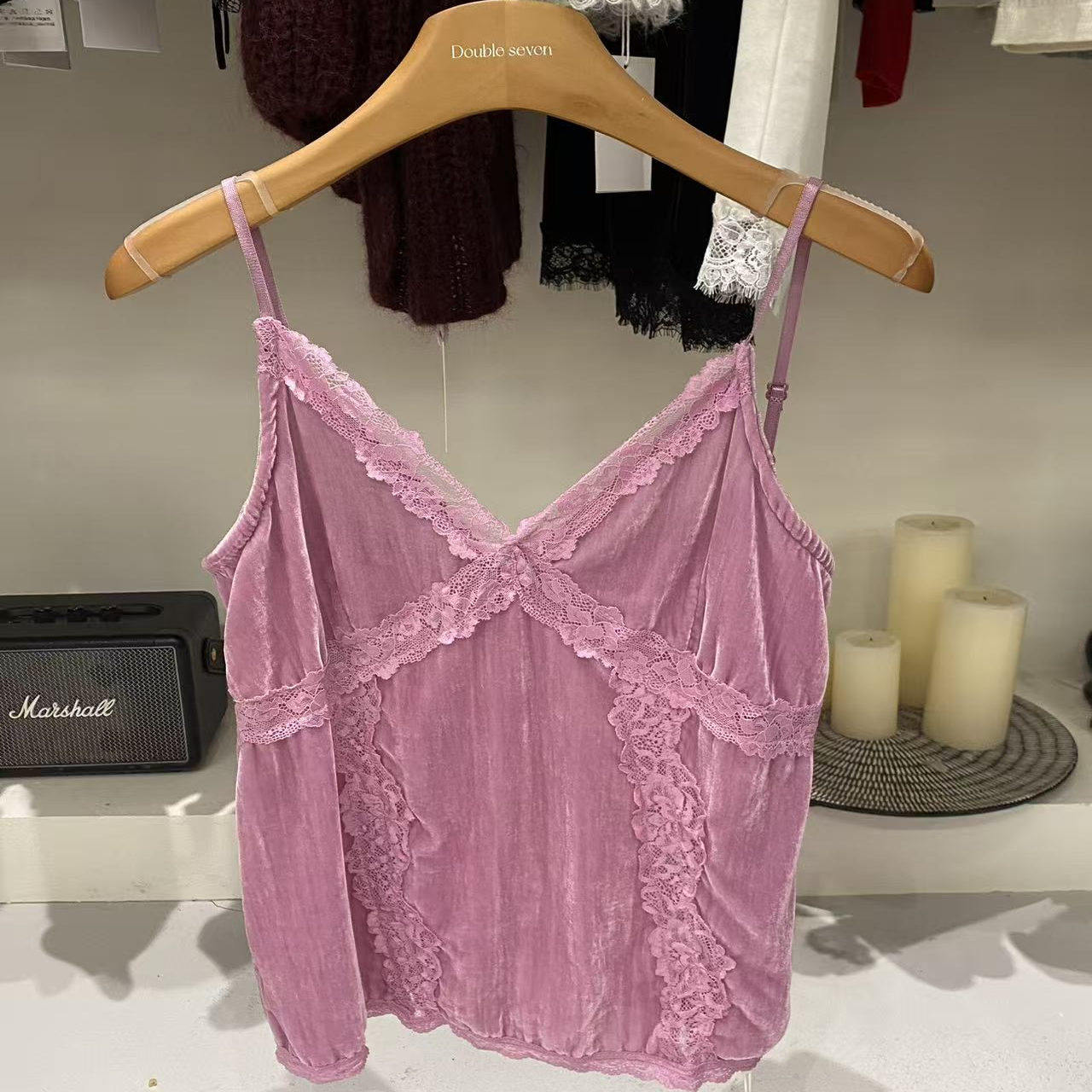 上衣内搭 DoubleSeven纯欲风拼接蕾丝丝绒吊带打底衫 2025冬季 新款