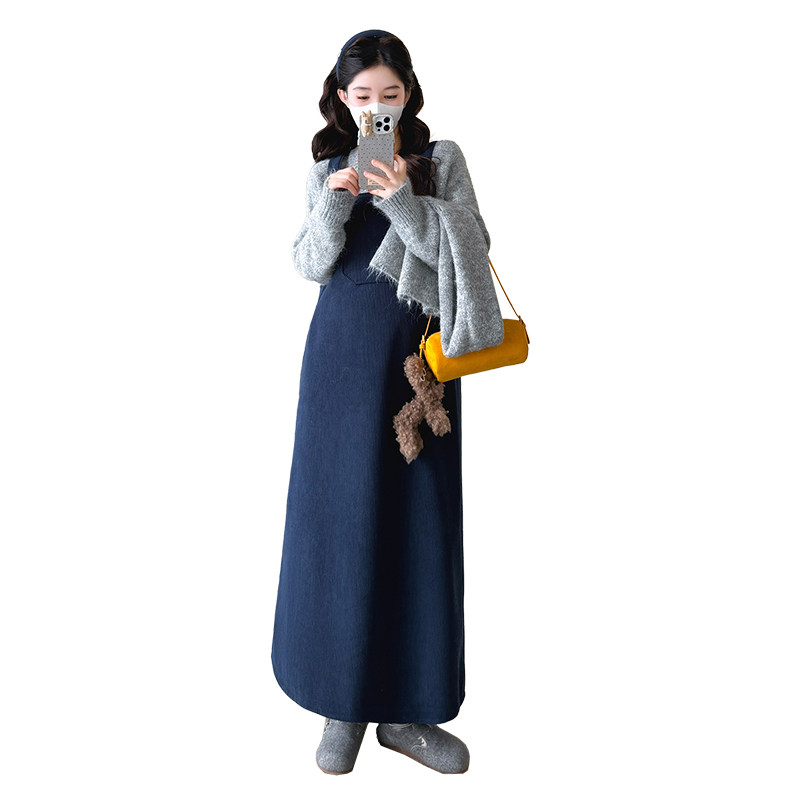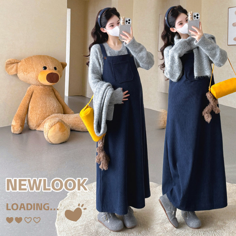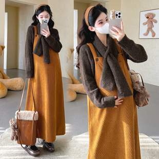 针织毛衣搭配围巾百搭加绒背带裙韩版 2025秋冬款 三件套 时尚 孕妇装