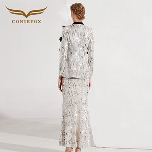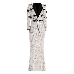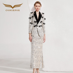 创意狐高知显瘦高端礼服套装 温柔氛围感珠片流光穿搭鱼尾裙一整套
