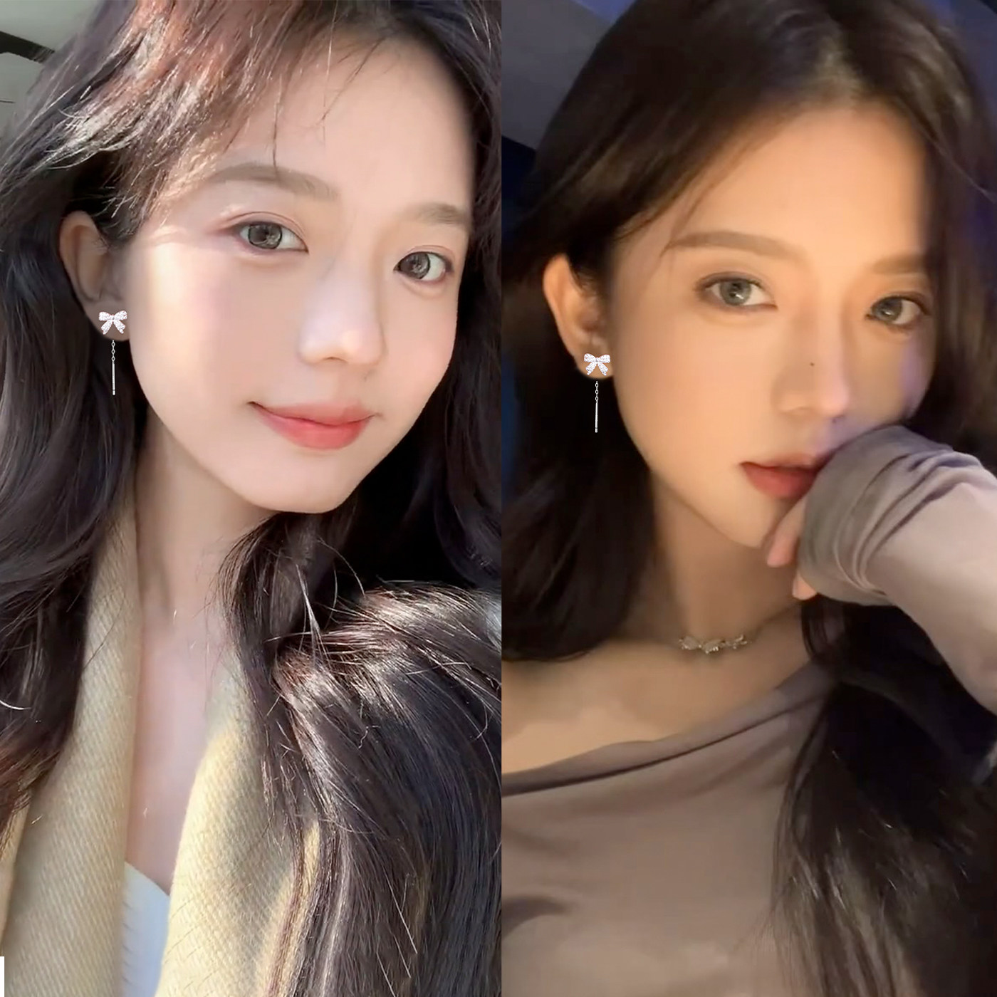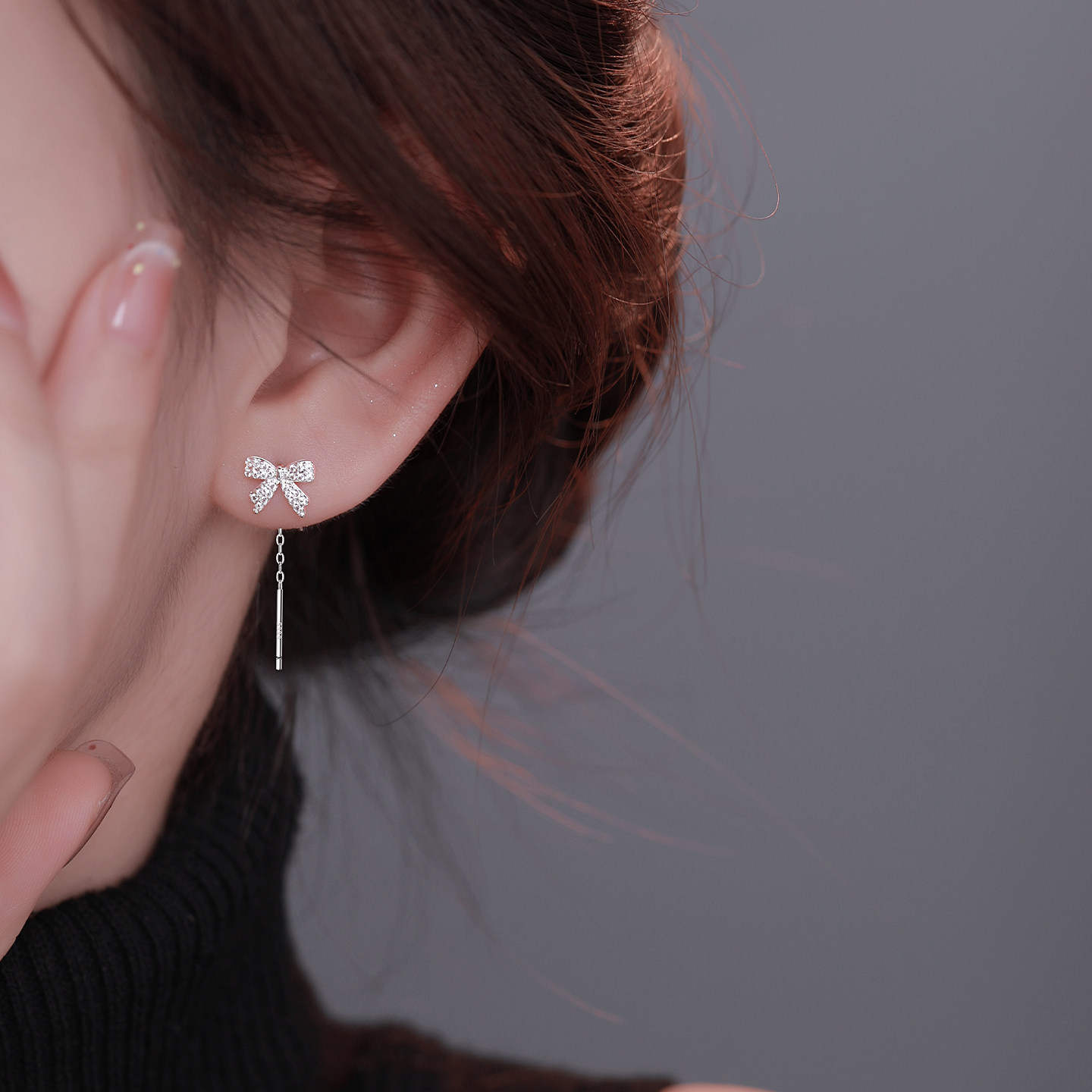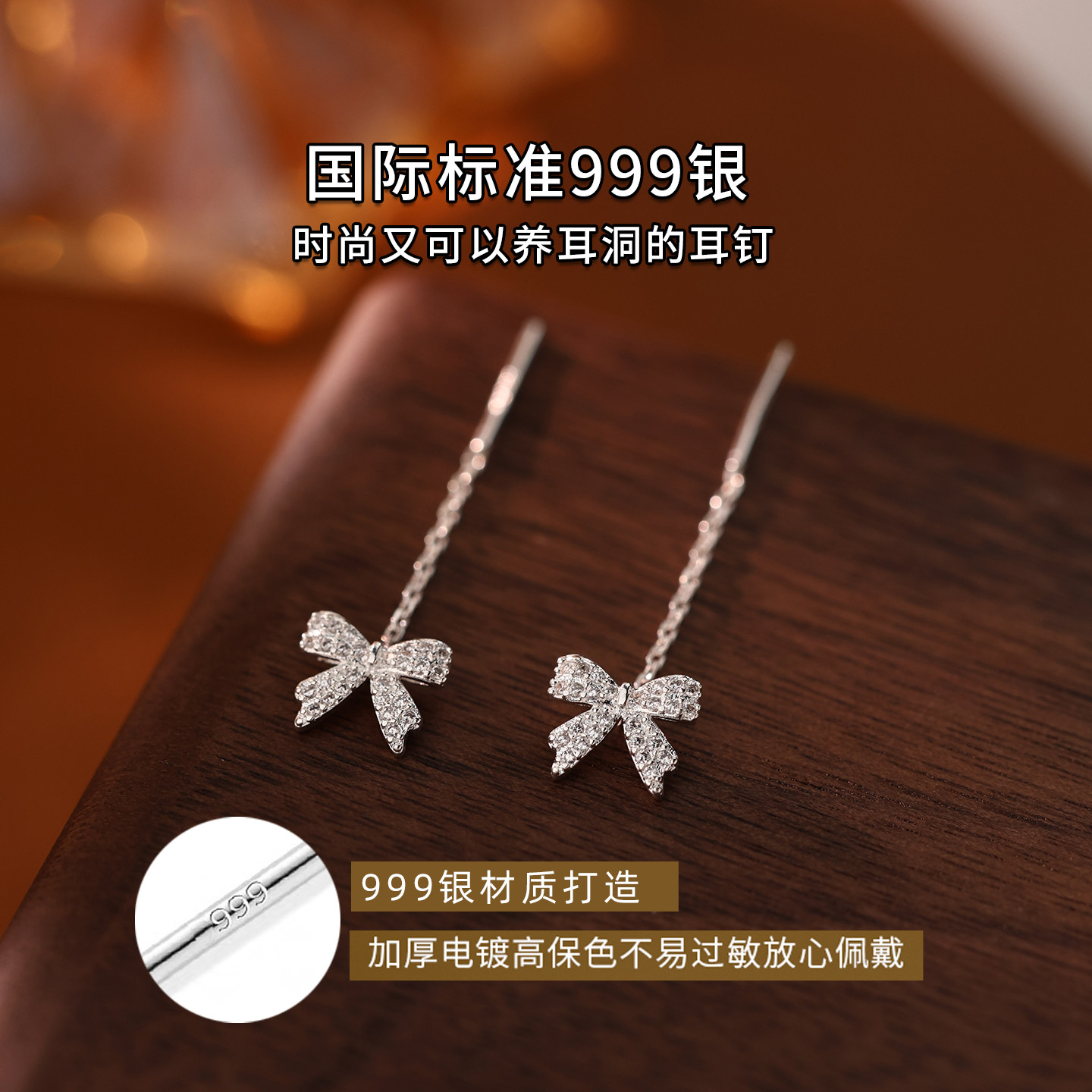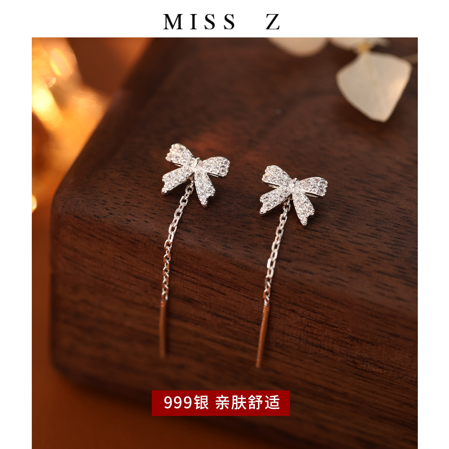 Z小姐999银蝴蝶结流苏耳线女轻奢高级感气质耳环2025新款 耳饰 爆款
