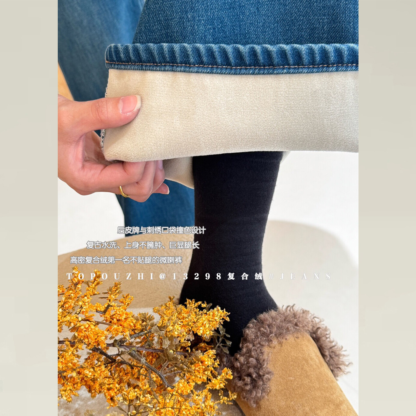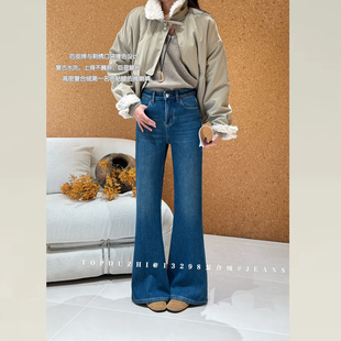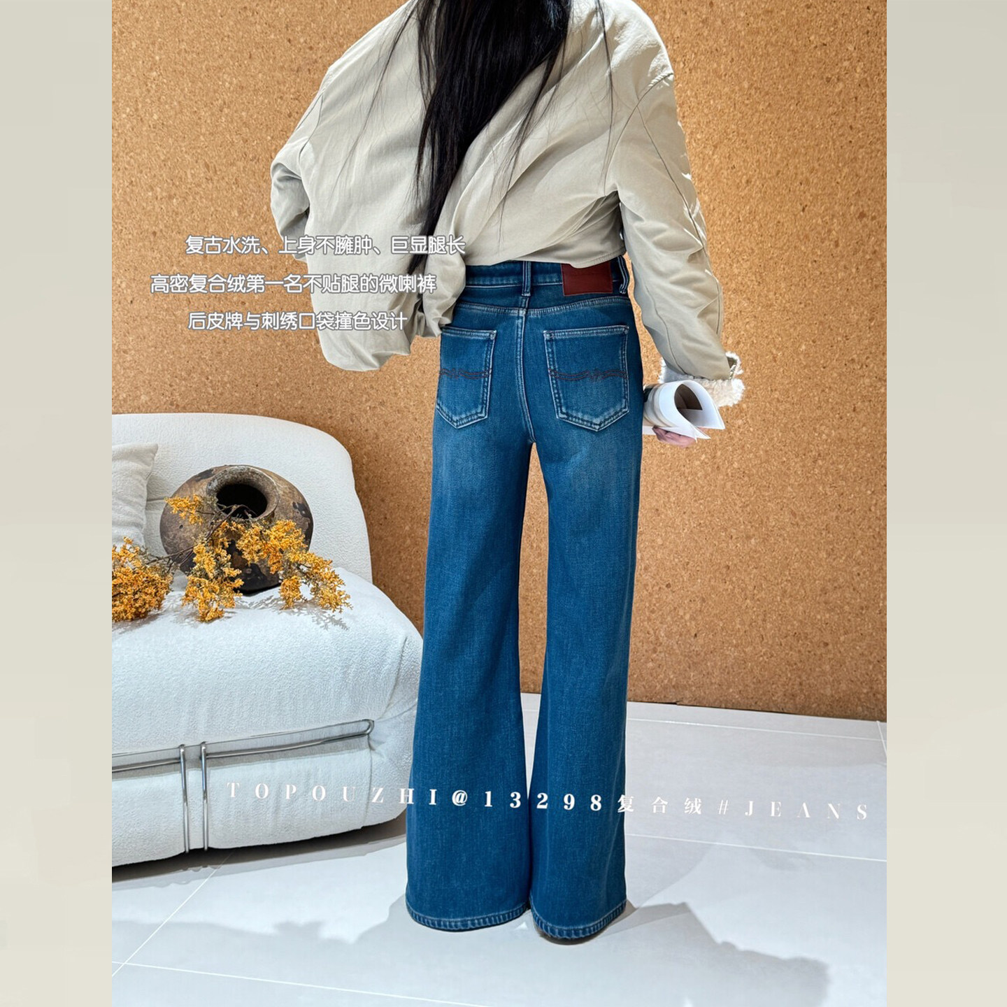 四面弹不贴腿微喇裤 型超好看 13298 子版 TOP欧制深蓝色加绒牛仔裤