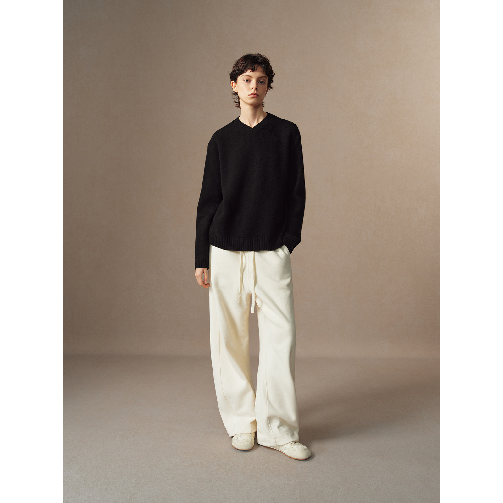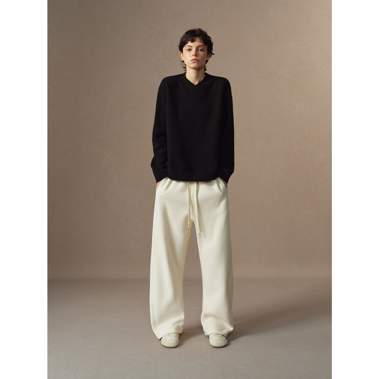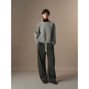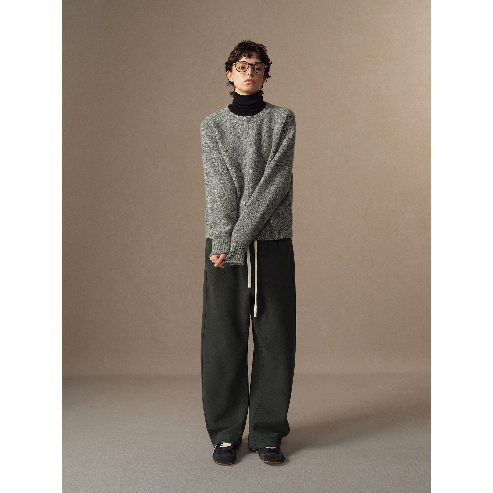 百搭直筒卫裤 加绒抽绳松紧腰弯刀阔腿休闲裤 女 抹茶拿铁 华吉言